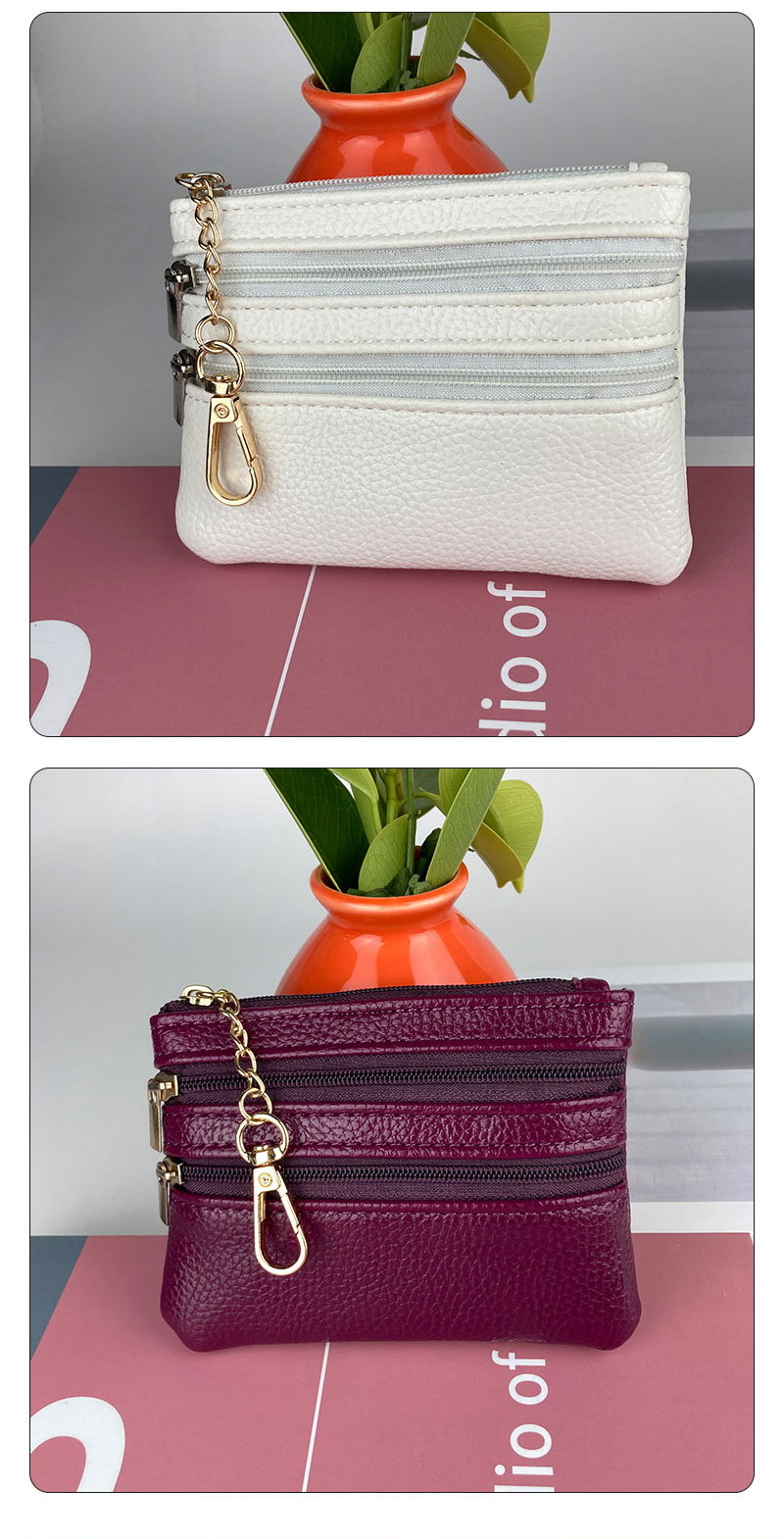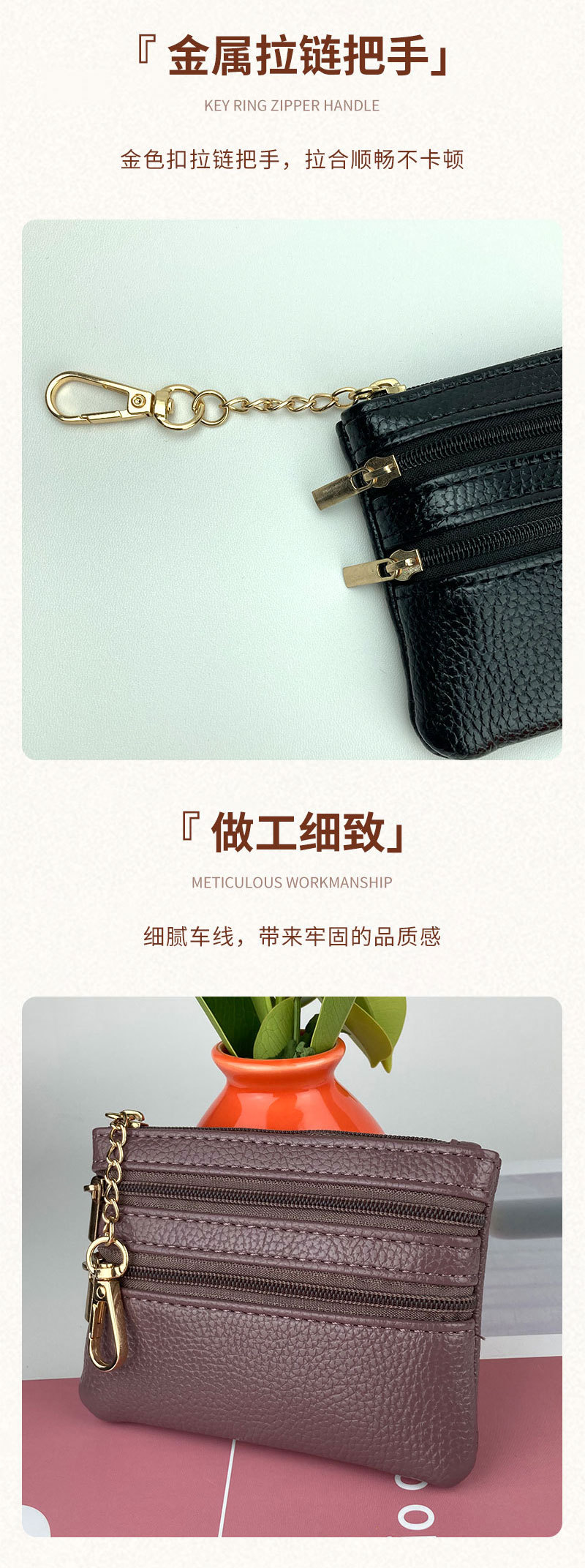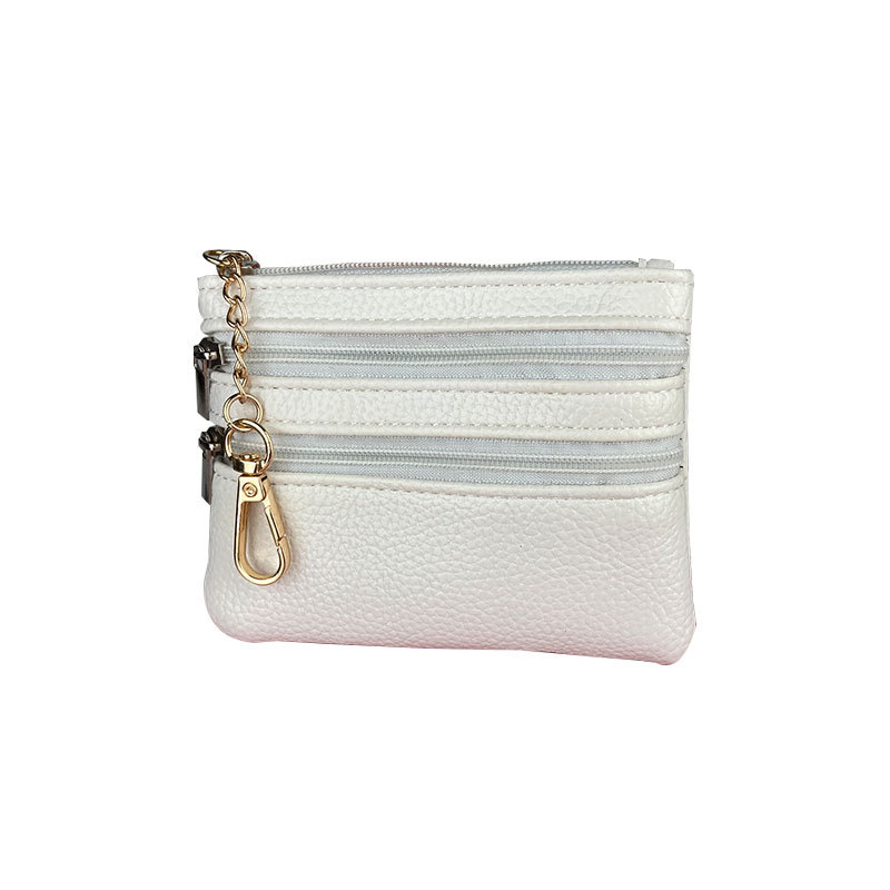 간단한 짧은 숙녀 지갑 학생 티켓 클립 더블 지퍼 다기능 카드 가방 변경 PU 가죽 지갑 도매