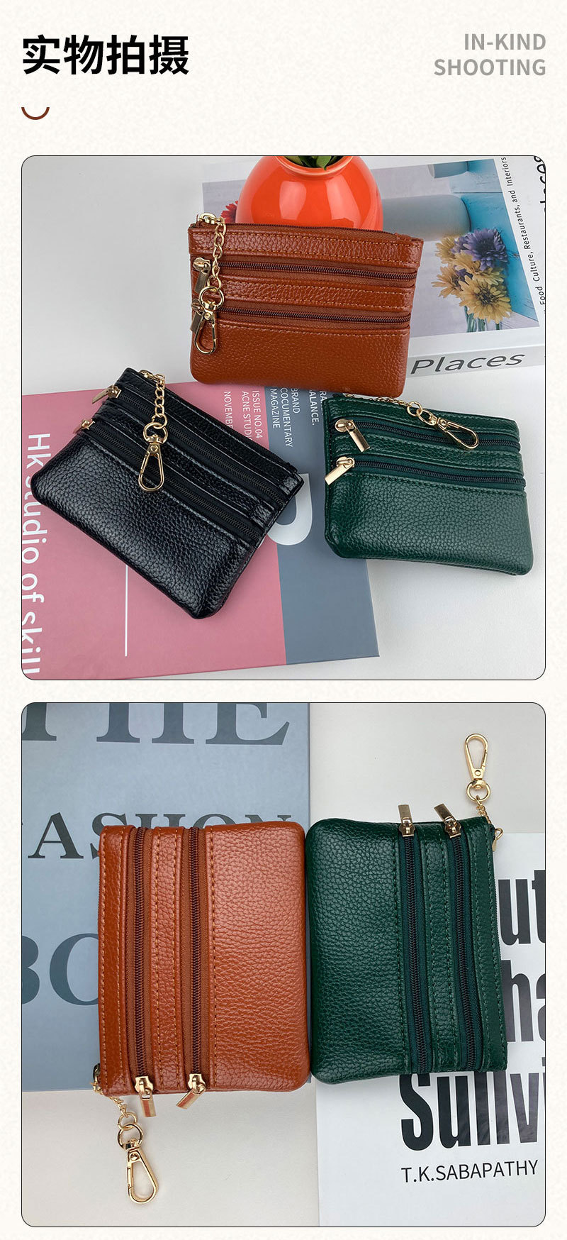 간단한 짧은 숙녀 지갑 학생 티켓 클립 더블 지퍼 다기능 카드 가방 변경 PU 가죽 지갑 도매스토어 가기