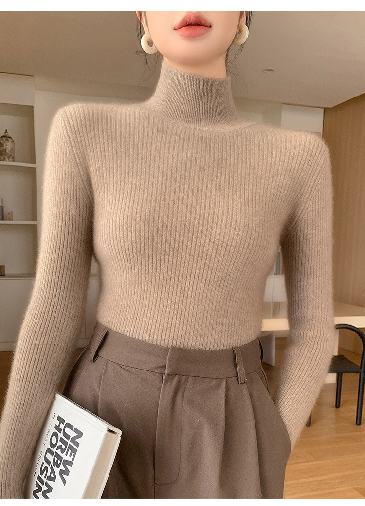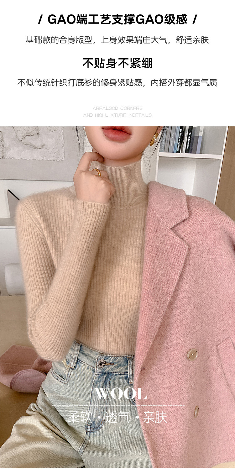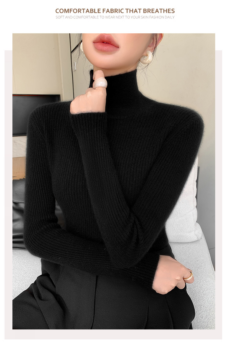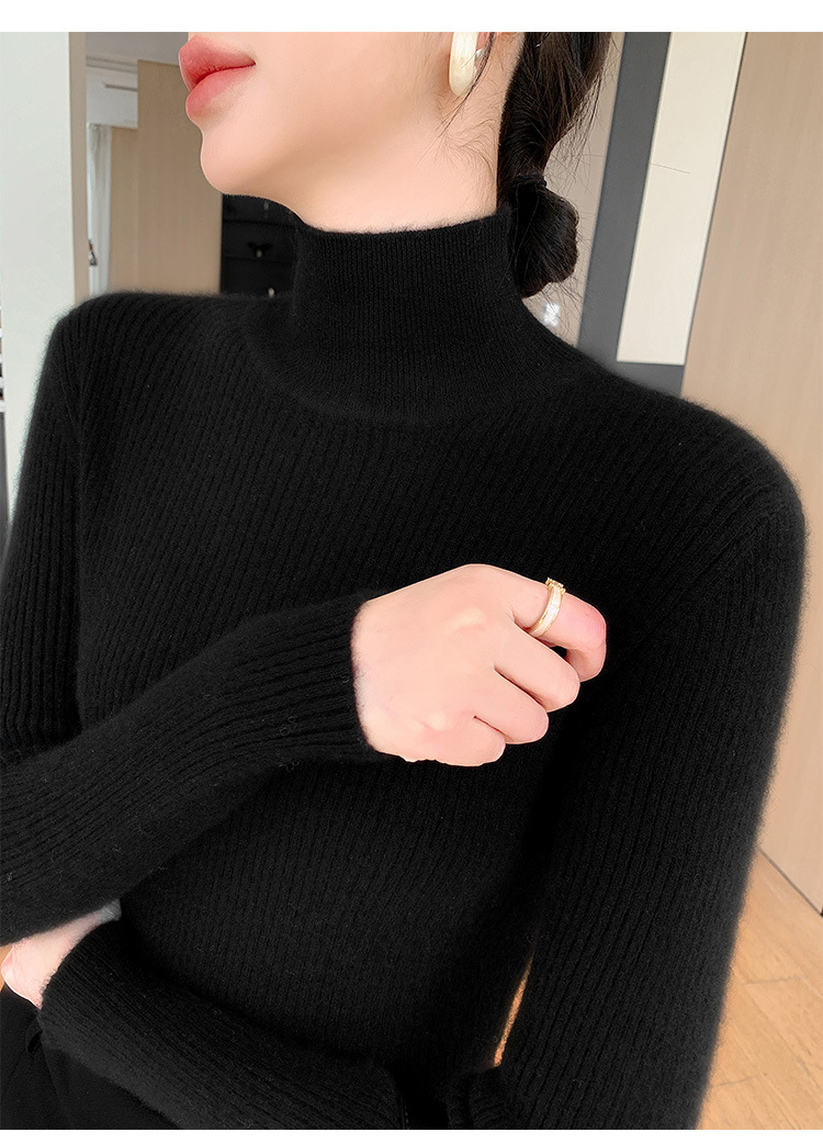 검은 높은 목 긴 소매 니트 스웨터 여성의 가을 및 겨울 내베이스 셔츠 슬림 핏 탑 Liu Shishi 같은 스타일 중간 목 스웨터스토어 가기