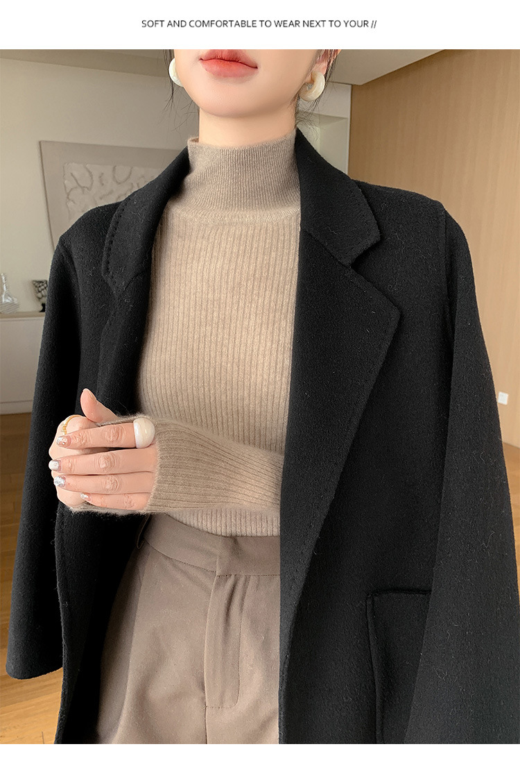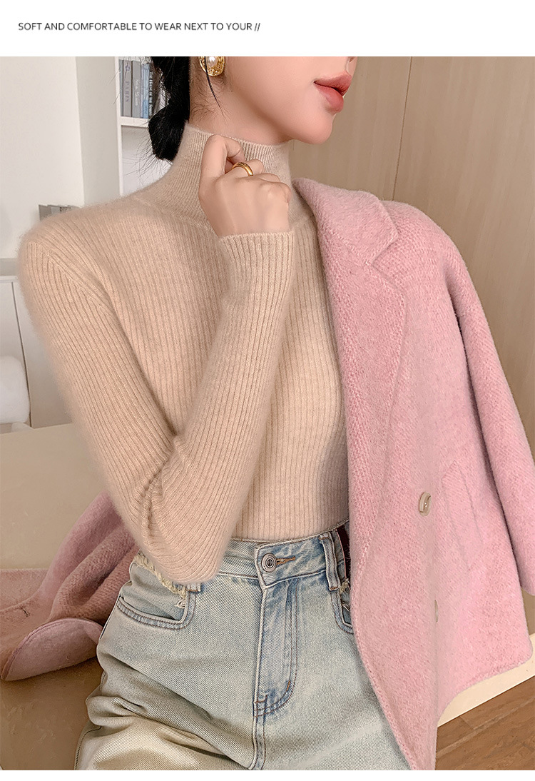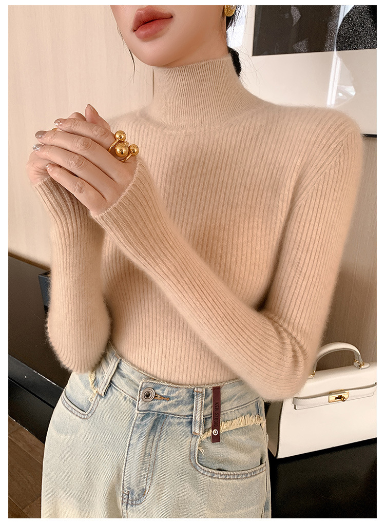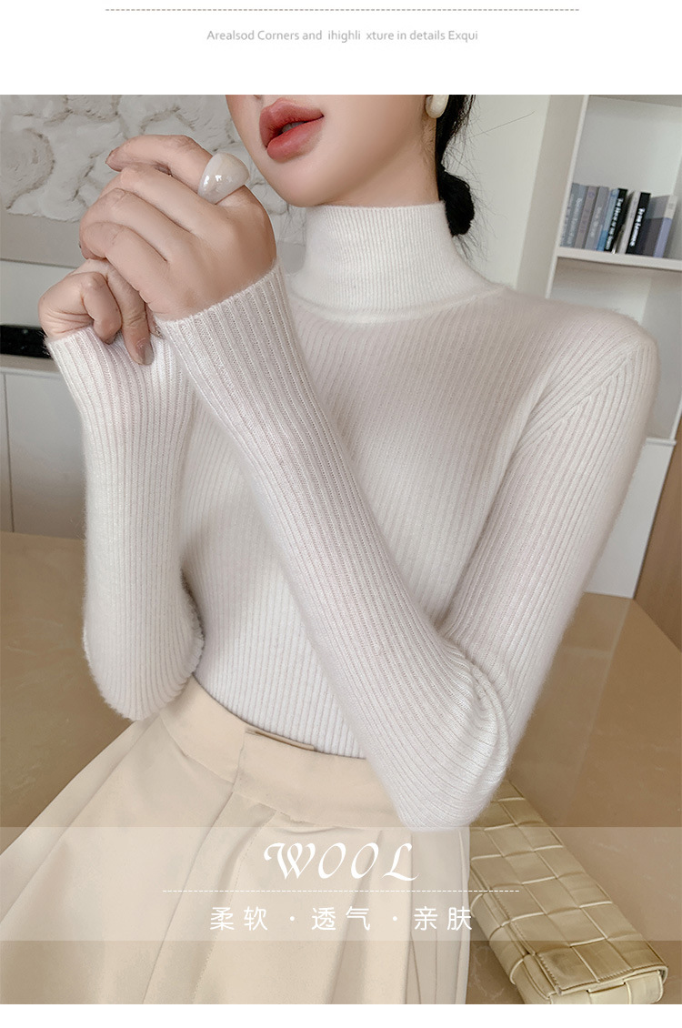검은 높은 목 긴 소매 니트 스웨터 여성의 가을 및 겨울 내베이스 셔츠 슬림 핏 탑 Liu Shishi 같은 스타일 중간 목 스웨터스토어 가기