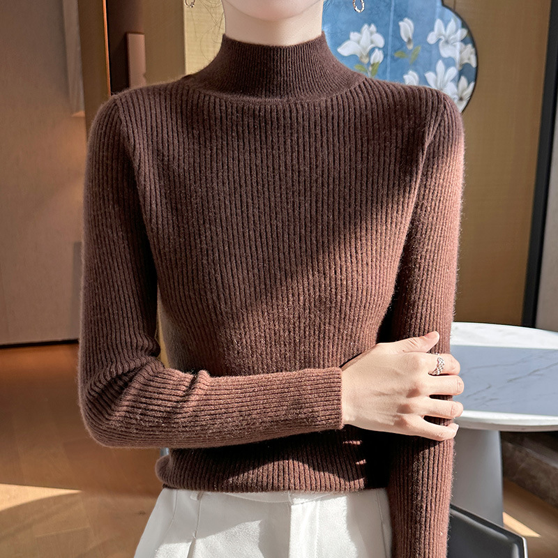 검은 높은 목 긴 소매 니트 스웨터 여성의 가을 및 겨울 내베이스 셔츠 슬림 핏 탑 Liu Shishi 같은 스타일 중간 목 스웨터