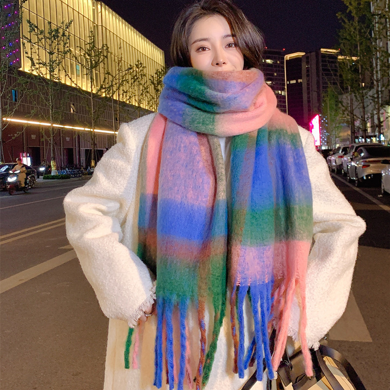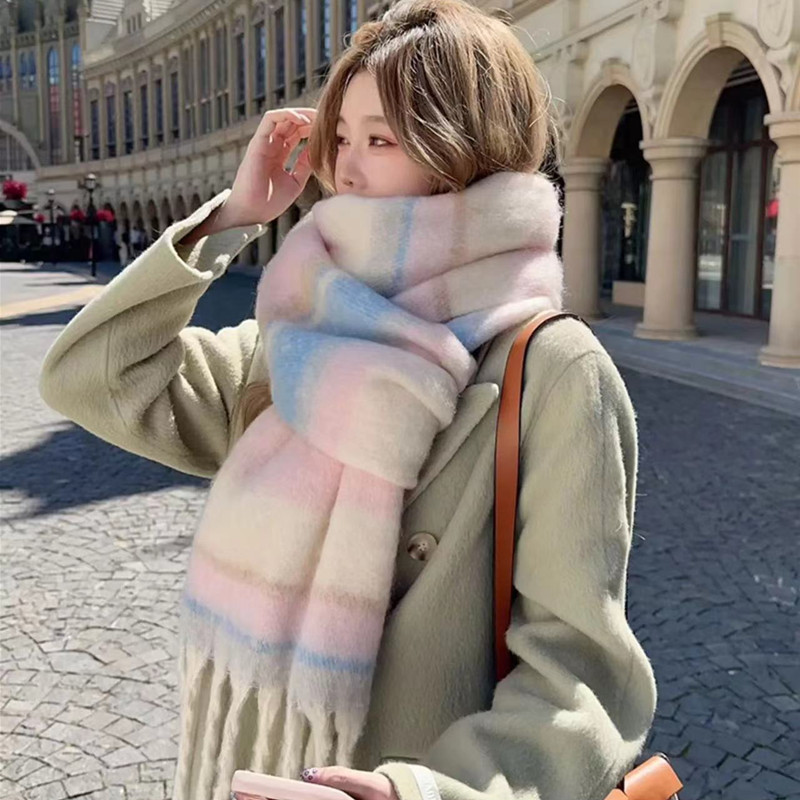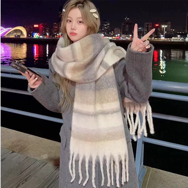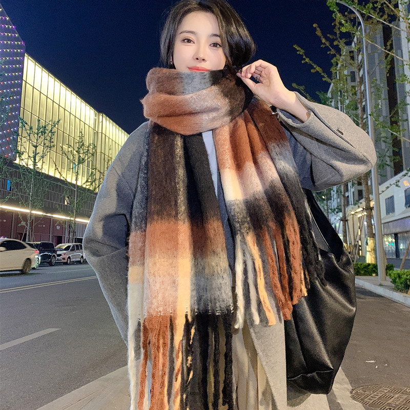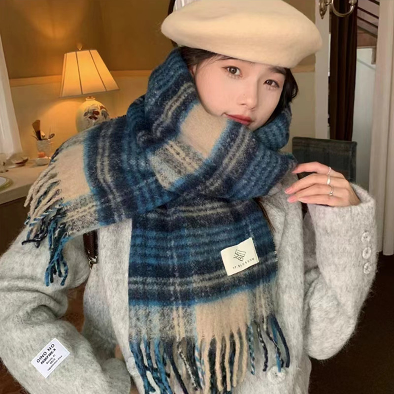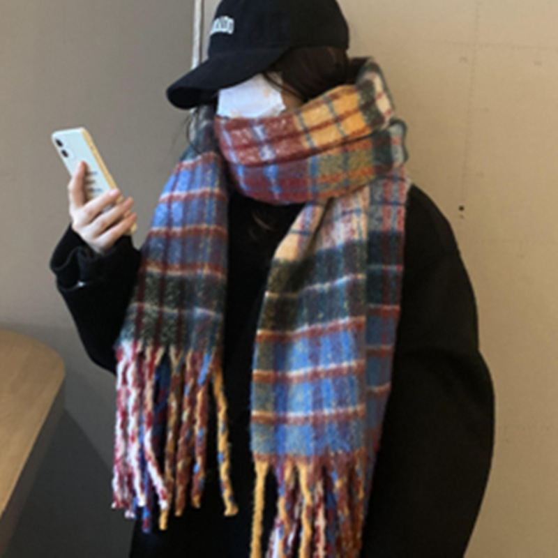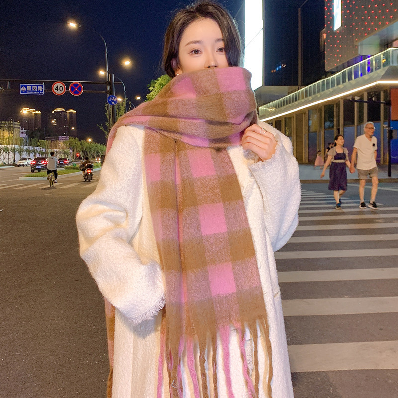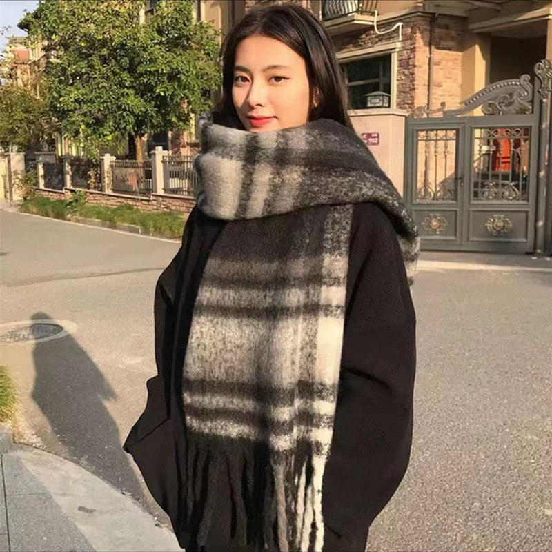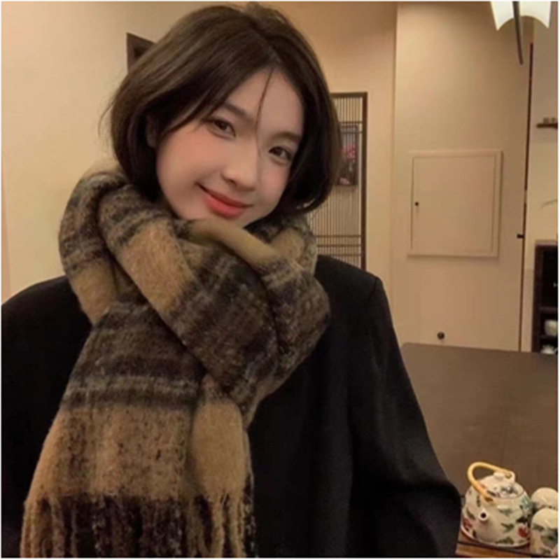 가을 겨울 신상 모조 캐시미어 체크 스카프 한국 스타일 고급스러운 따뜻한 숄 학생용 다용도 두꺼운 커플 스카프스토어 가기