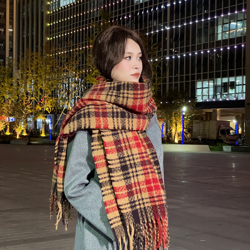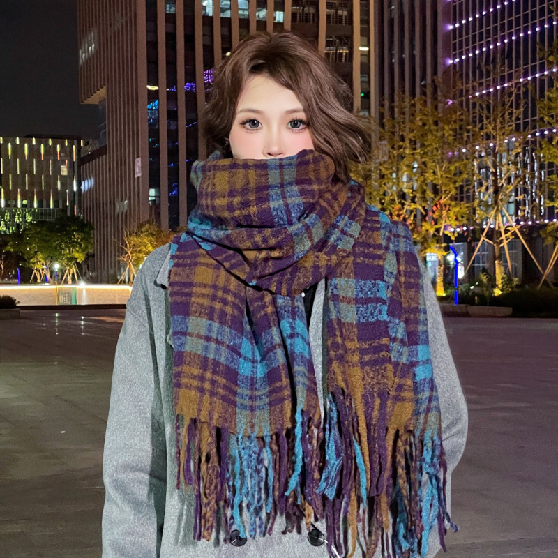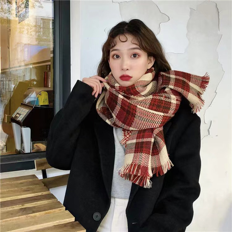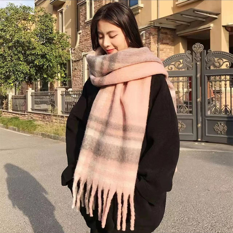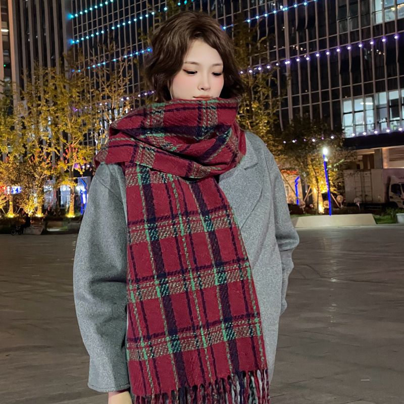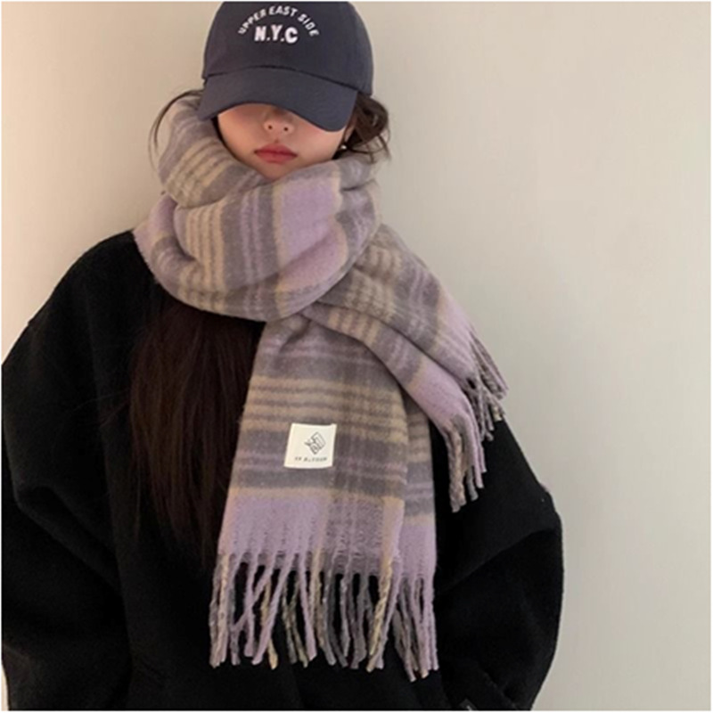 가을 겨울 신상 모조 캐시미어 체크 스카프 한국 스타일 고급스러운 따뜻한 숄 학생용 다용도 두꺼운 커플 스카프