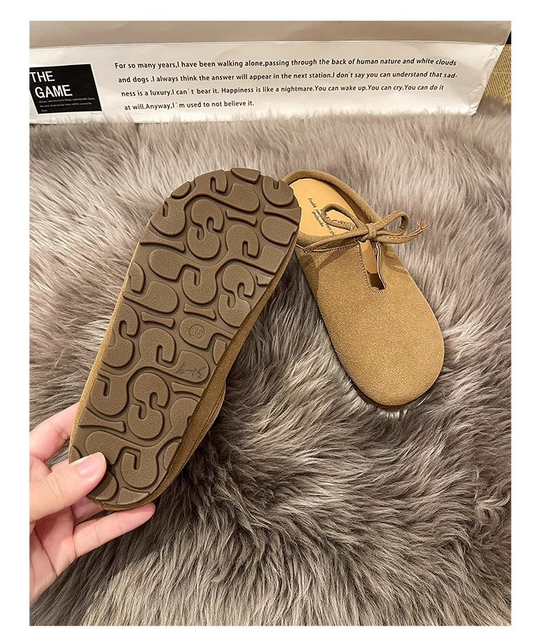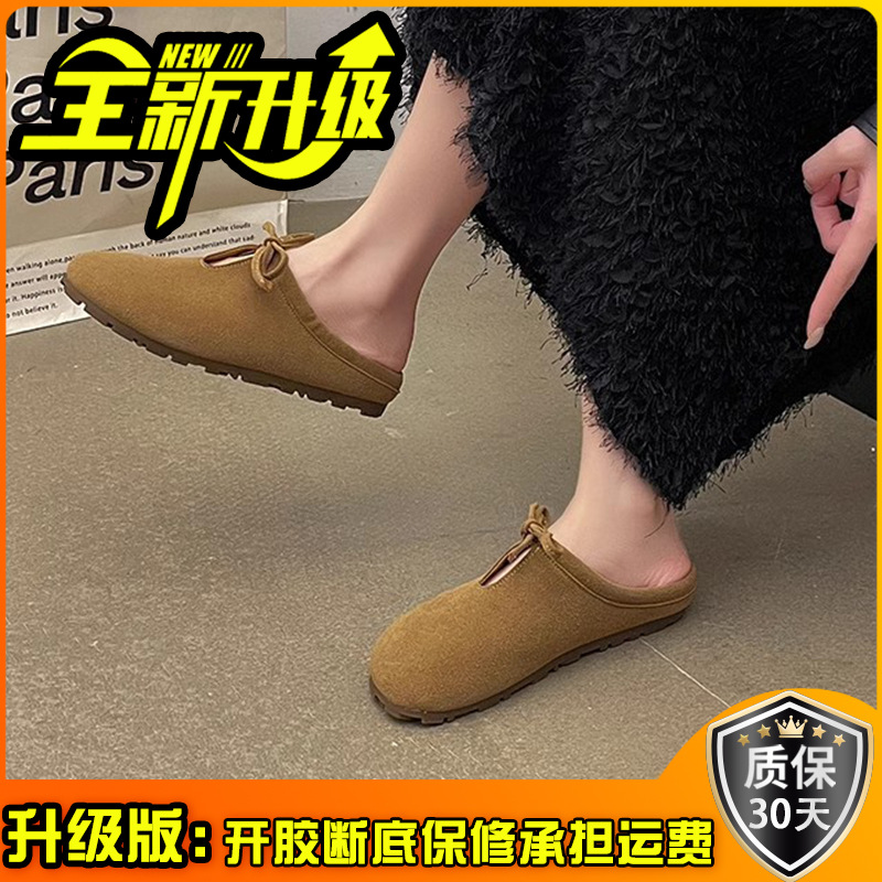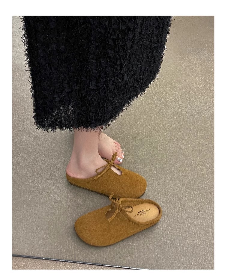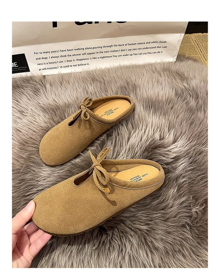 일본식 신선한 스타일 모리 스웨이드 슬리퍼 여성 2024 가을 신식 아우터 레이스 업 게으른 뮬러 플랫 발가락 슬리퍼스토어 가기