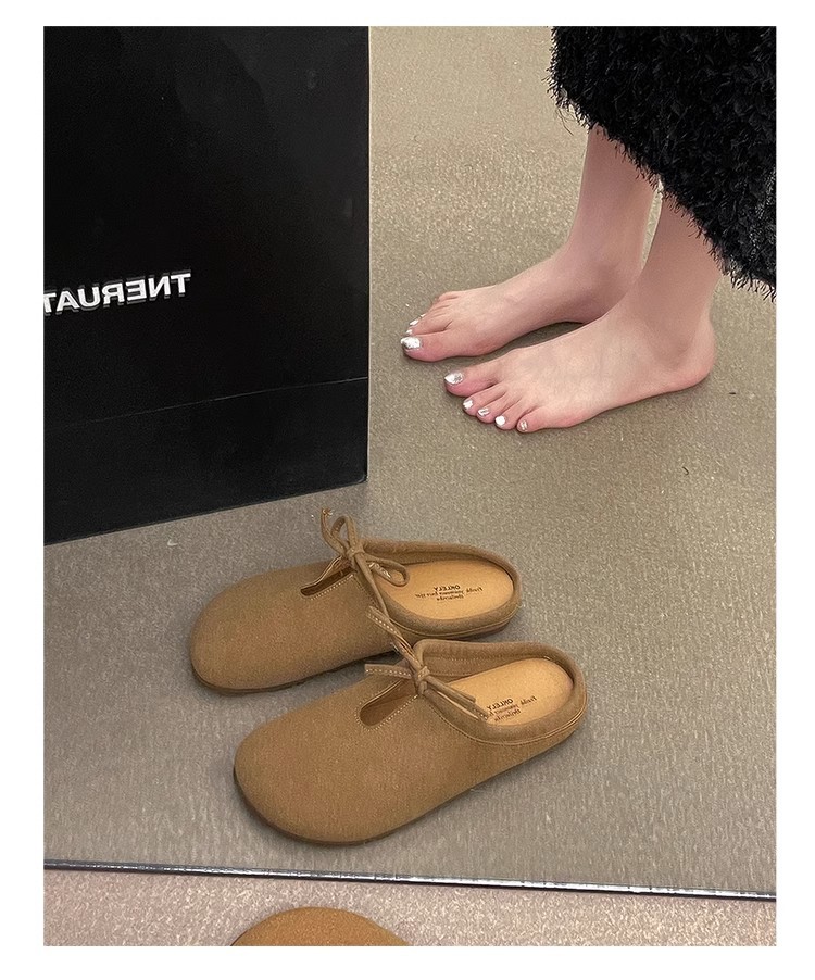 일본식 신선한 스타일 모리 스웨이드 슬리퍼 여성 2024 가을 신식 아우터 레이스 업 게으른 뮬러 플랫 발가락 슬리퍼