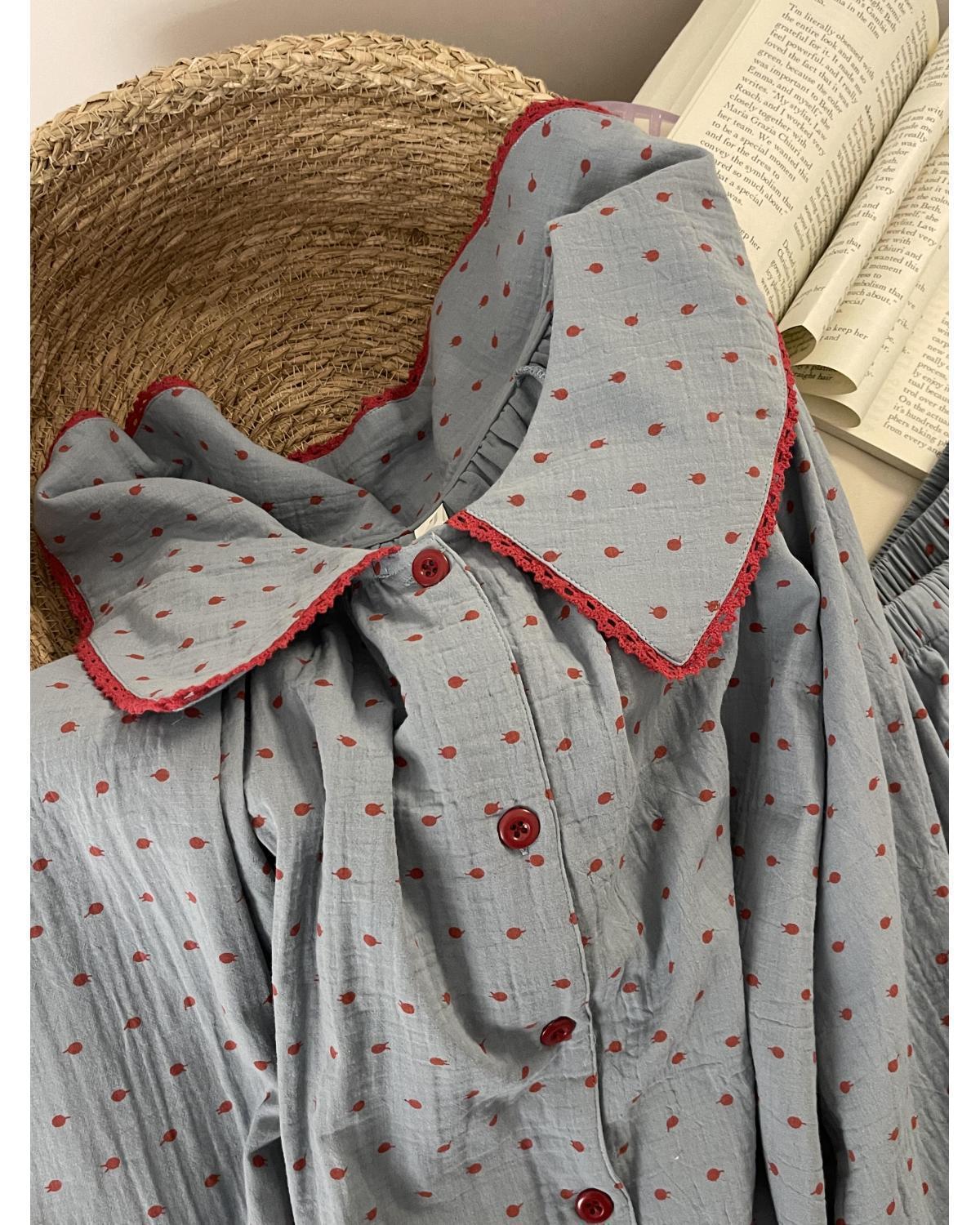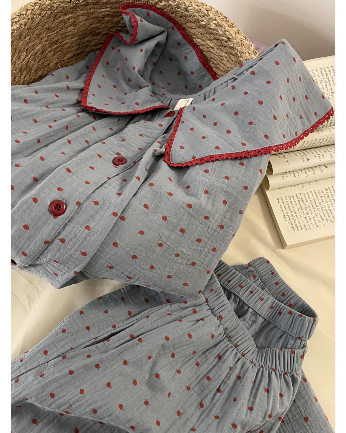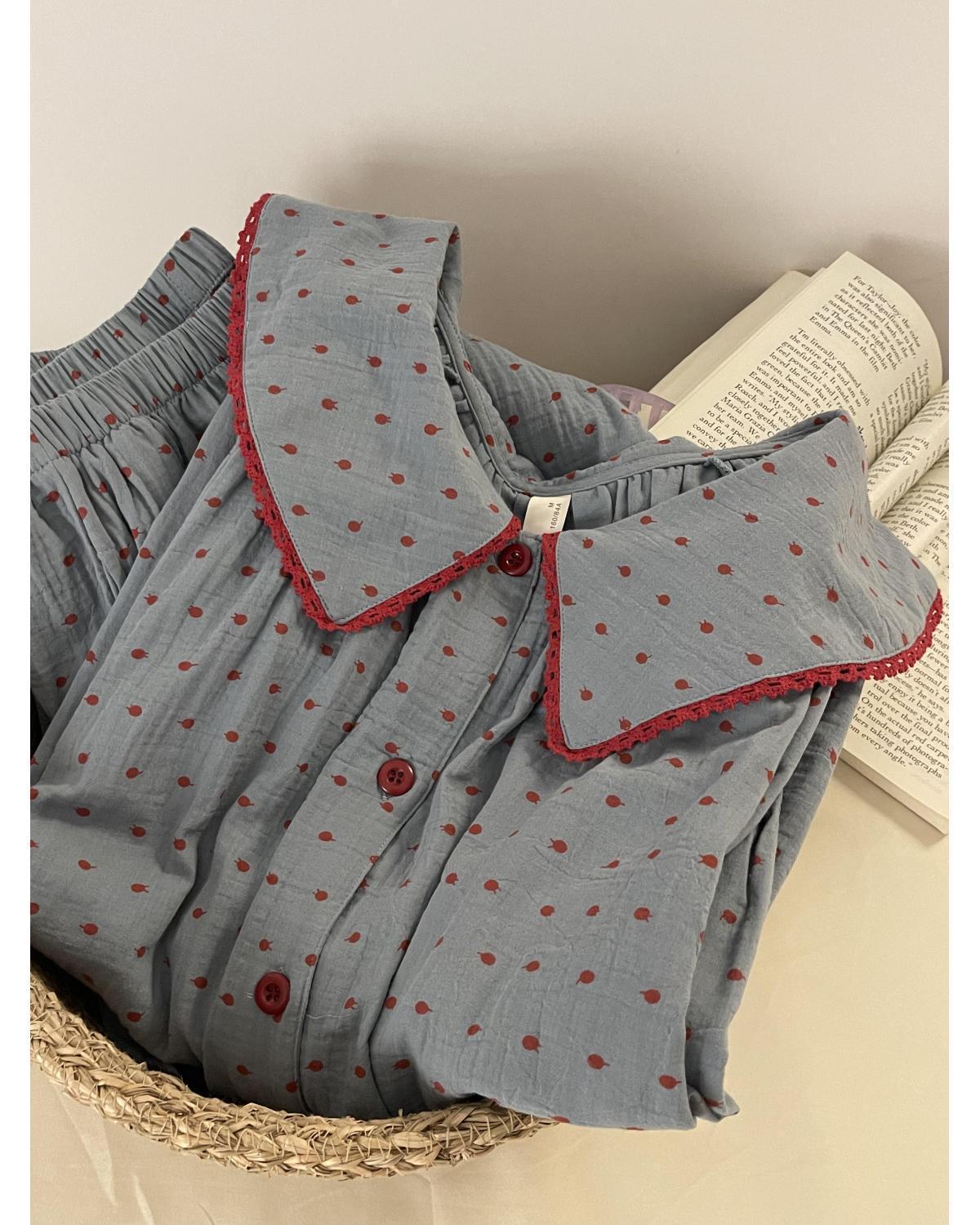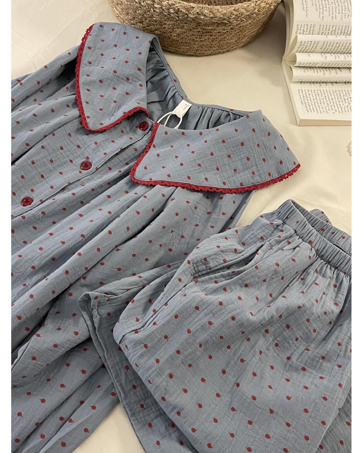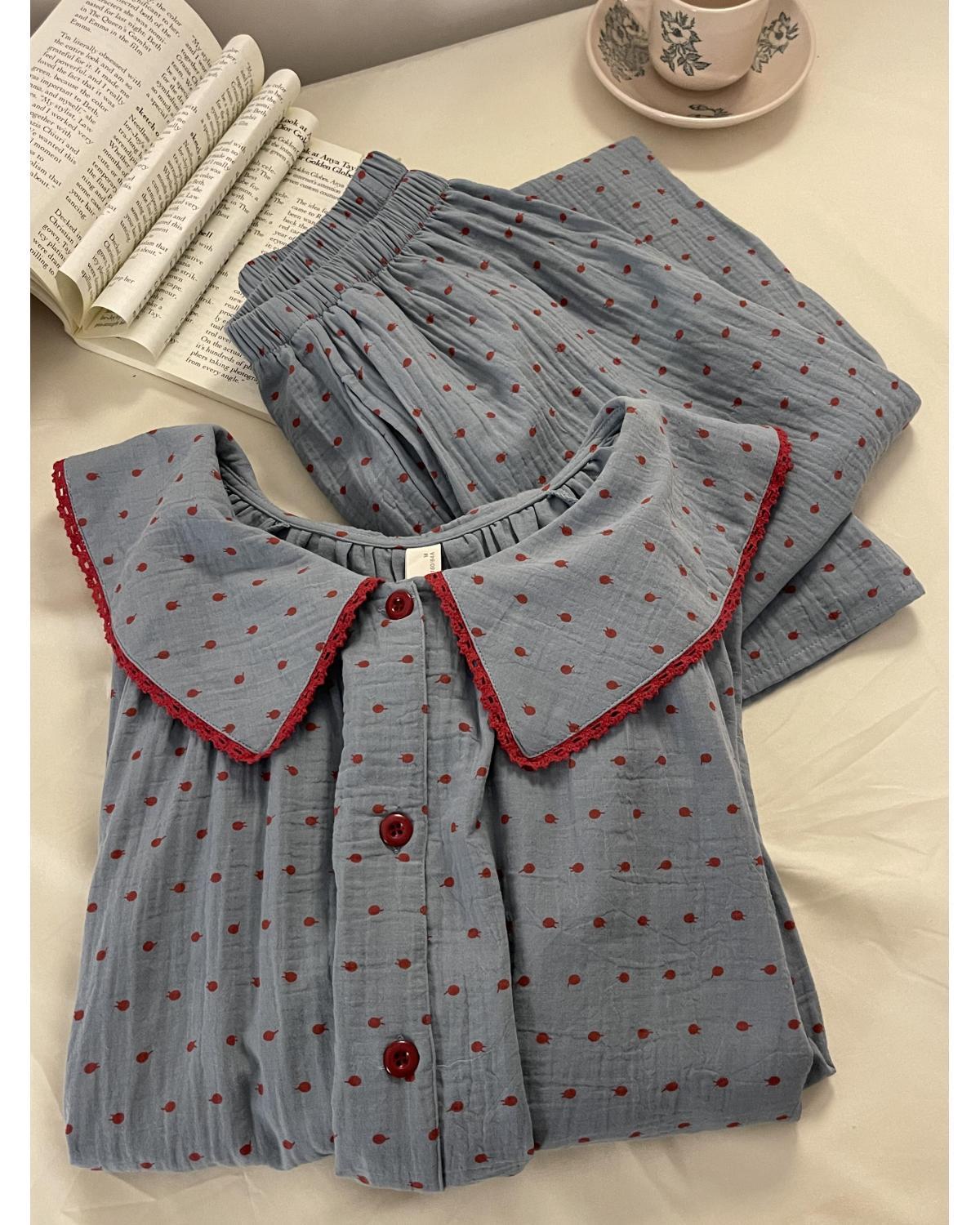 한국 스타일 귀여운 웨이브 도트 인형 칼라 파자마 여성 가을 구름 면 느슨한 긴 소매 학생 기숙사 홈 옷 세트