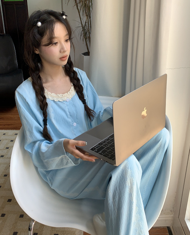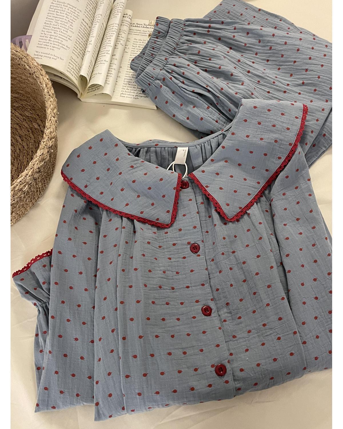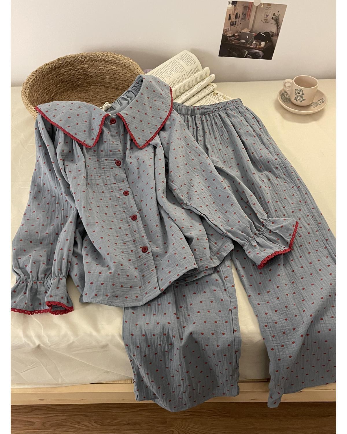 한국 스타일 귀여운 웨이브 도트 인형 칼라 파자마 여성 가을 구름 면 느슨한 긴 소매 학생 기숙사 홈 옷 세트스토어 가기