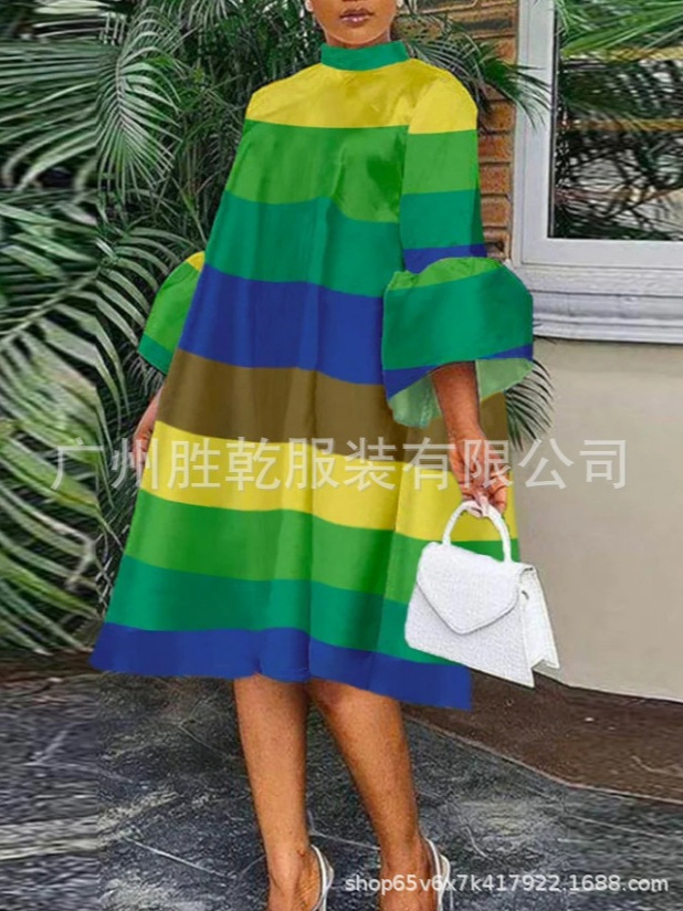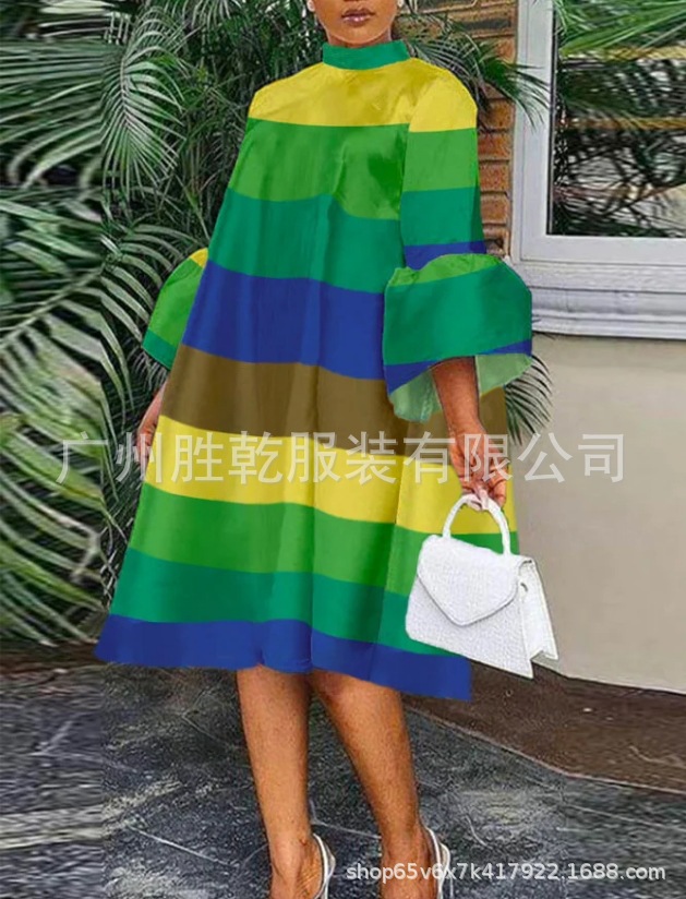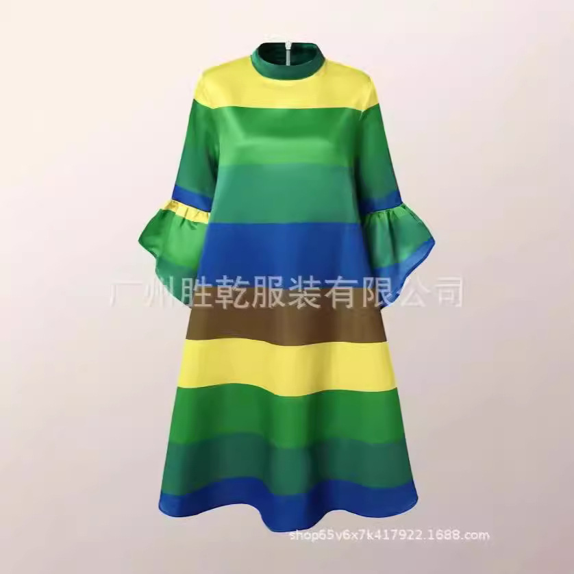 2024 국경 간 전자 상거래 아마존 스탠드 칼라 패션 캐주얼 여성의 새로운 단색 Shu Ya 기질 통근 원피스스토어 가기