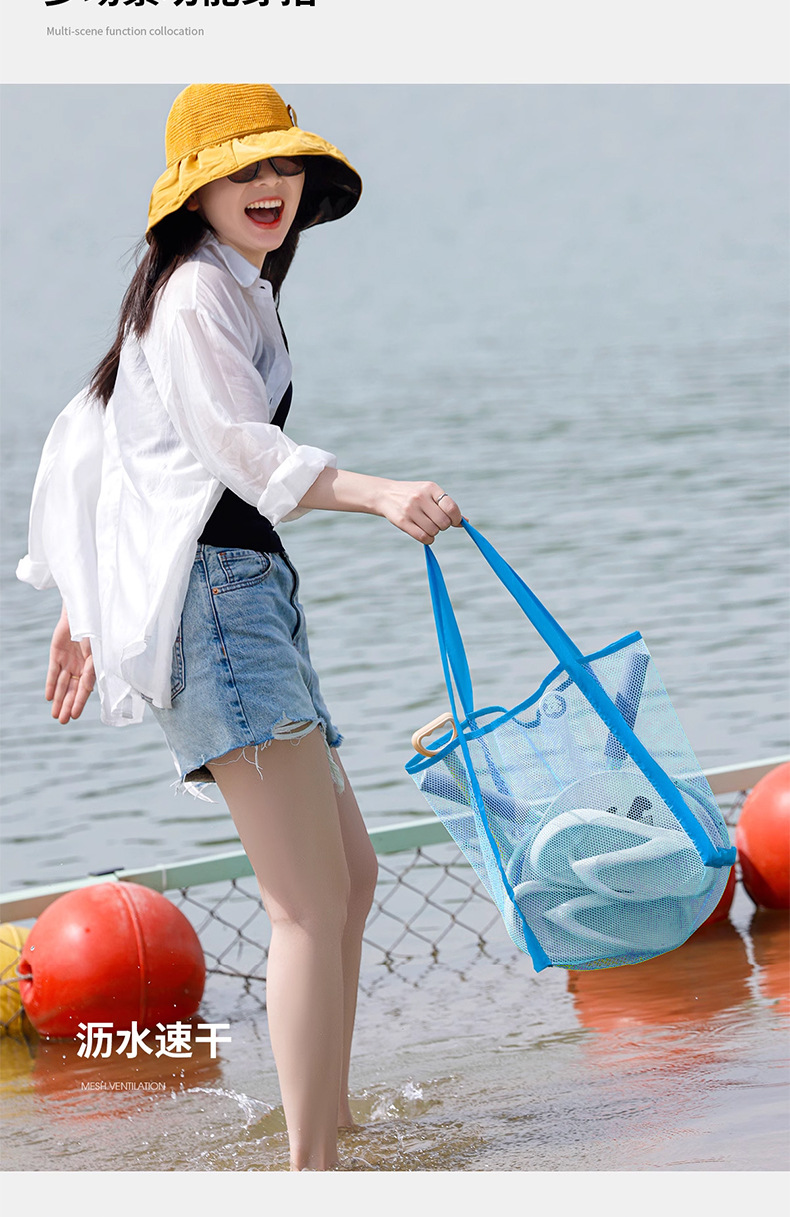해변 그물 가방 저장 가방 슈퍼 대용량 다기능 단색 어깨 메쉬 메쉬 비치 백 장난감 비치 백