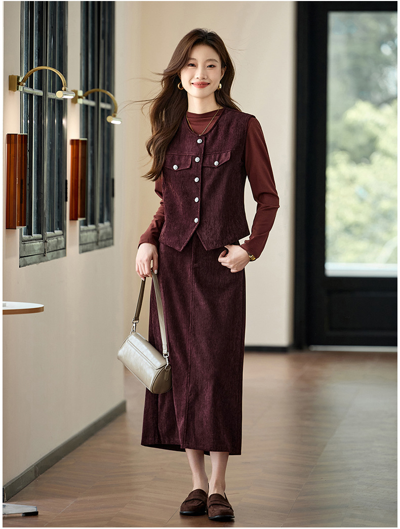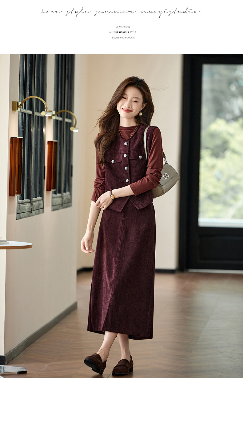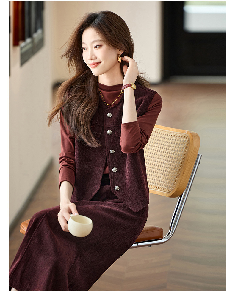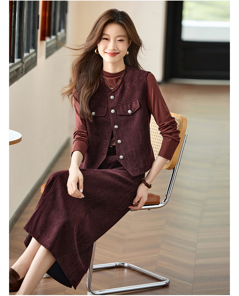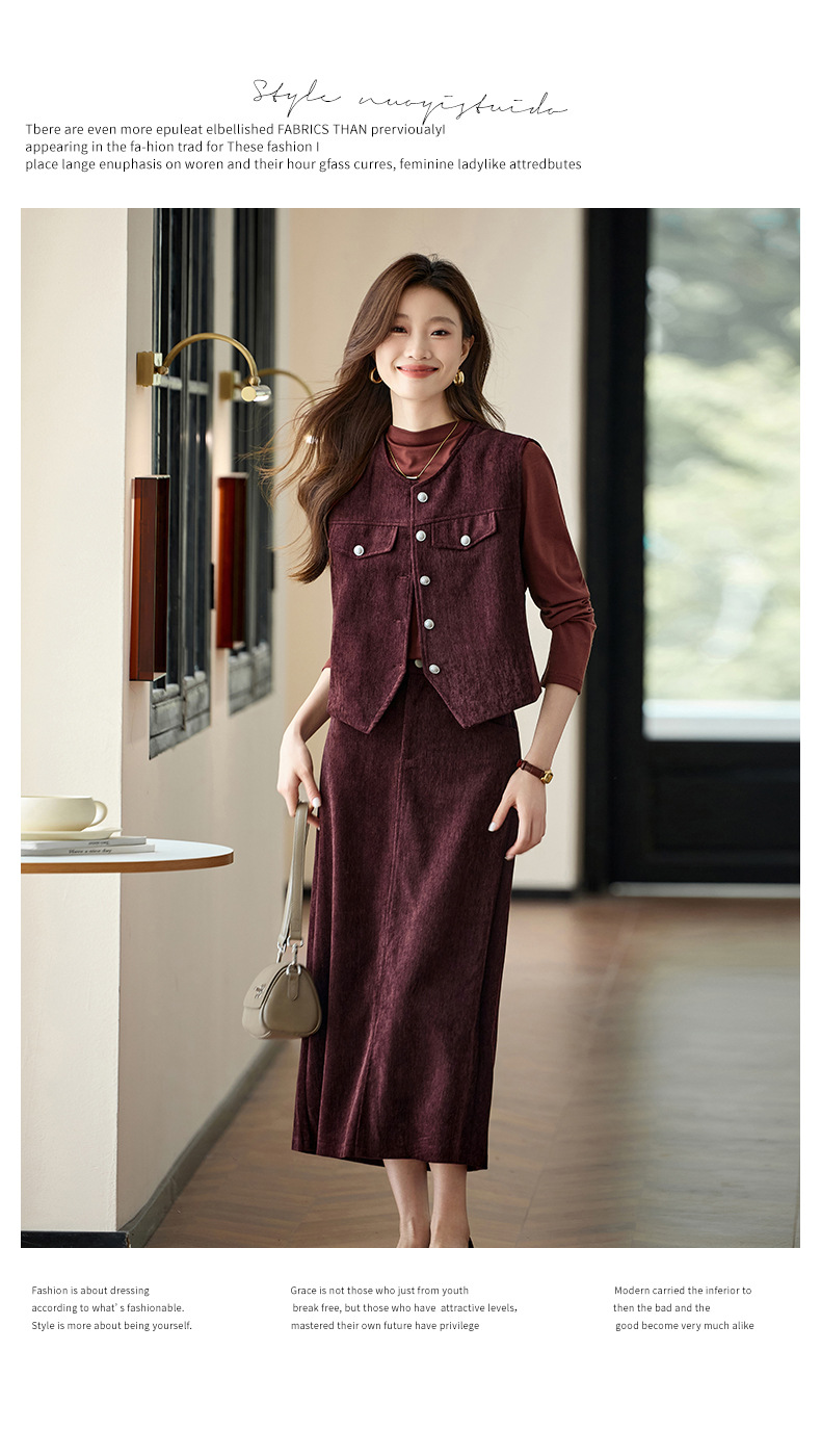 패션 세트 가을 새로운 여성 슬림 우아한 우아한 조끼 긴 소매 티셔츠 3 조각 스커트 YL680스토어 가기