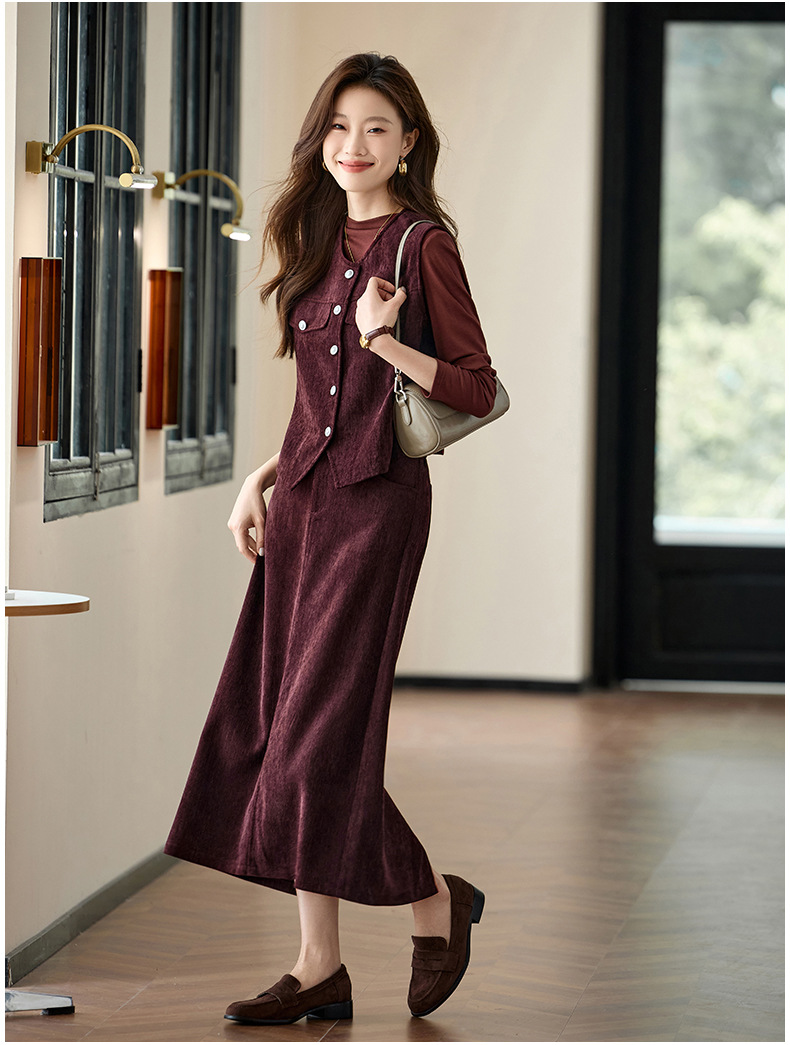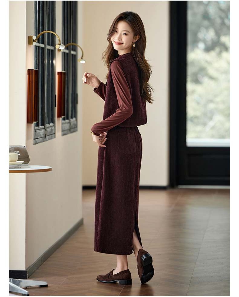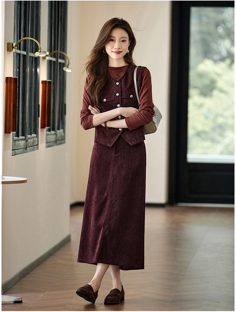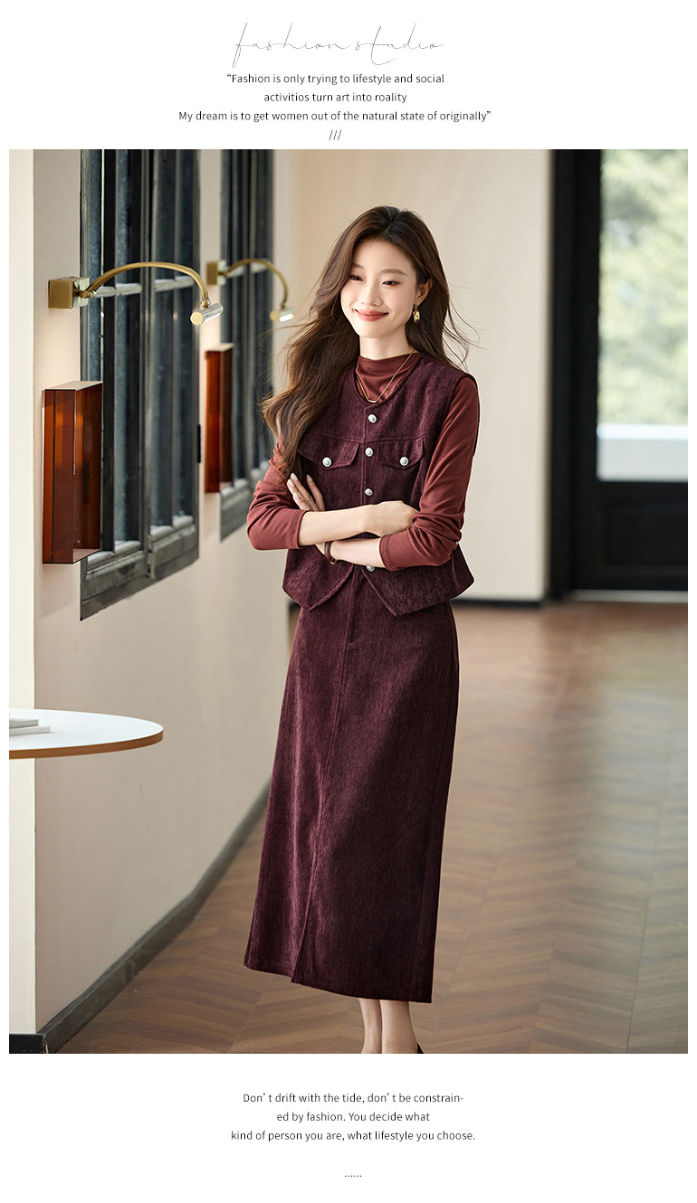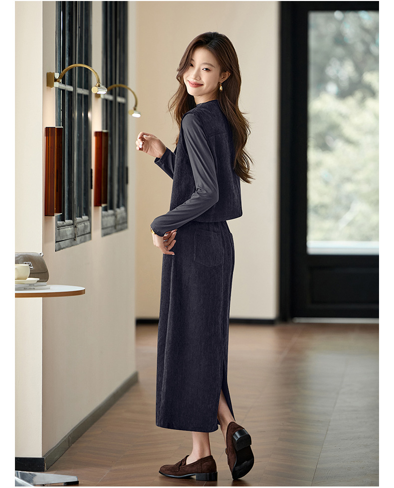 패션 세트 가을 새로운 여성 슬림 우아한 우아한 조끼 긴 소매 티셔츠 3 조각 스커트 YL680스토어 가기