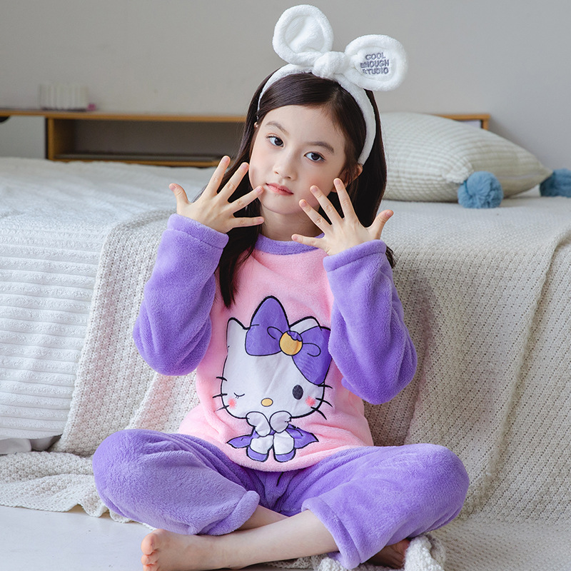 어린이 벨벳 잠옷 여성의 가을과 겨울 2024 소년 소녀 플란넬 세트 아동복 도매를위한 두꺼운 따뜻한 가정 옷