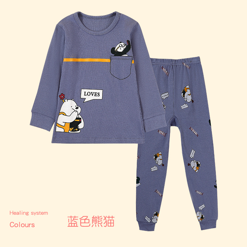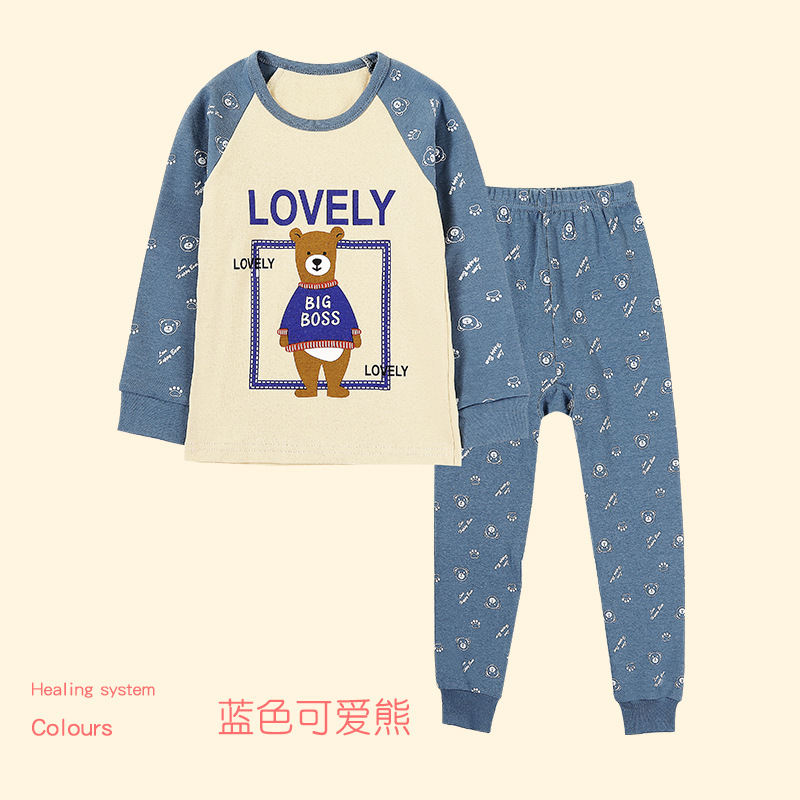 어린이 가을 및 겨울 코튼 따뜻한 세트 어린이 가을 의류 및 바지 기본 속옷 인쇄 귀여운 홈 의류 소프트