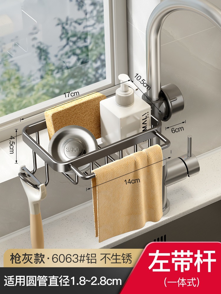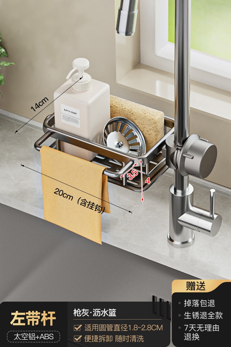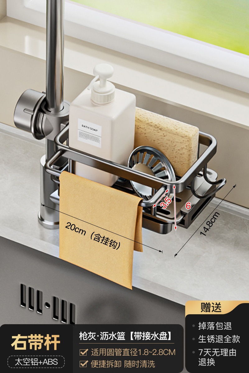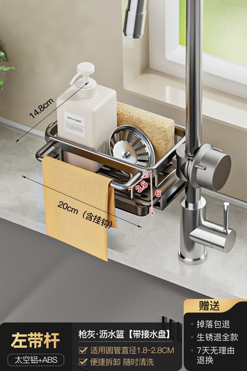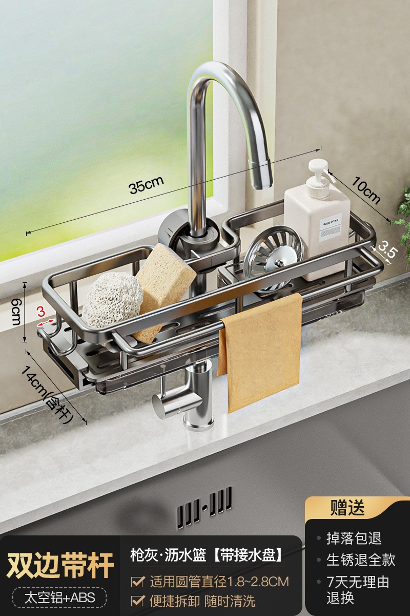 • 로드가 포함된 일체형 건그레이 양면 수전 배수 바구니 [배수 트레이 포함]