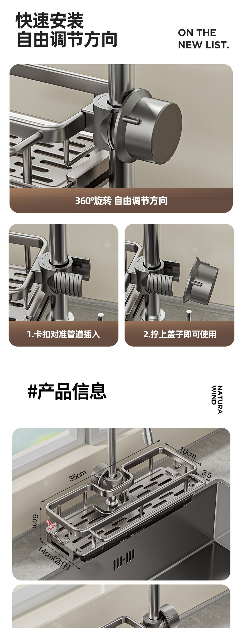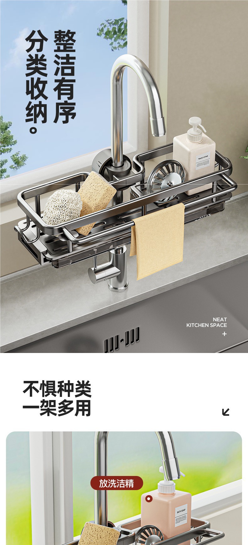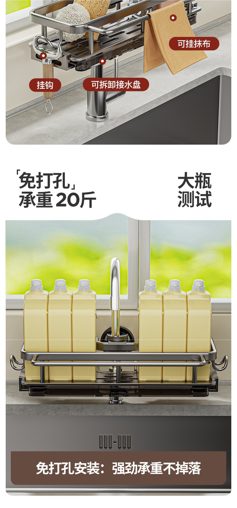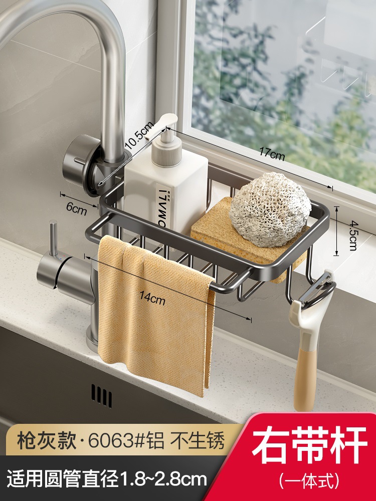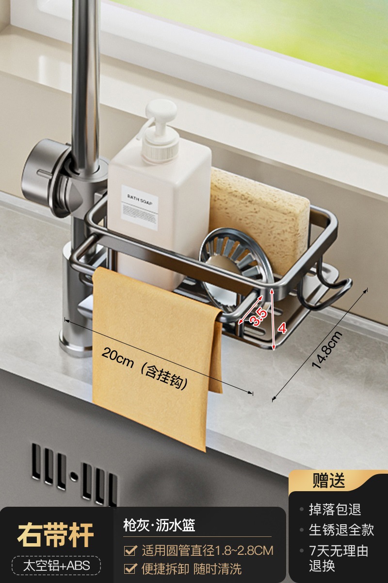 • 로드가 포함된 일체형 건그레이 양면 수전 배수 바구니 [배수 트레이 포함]