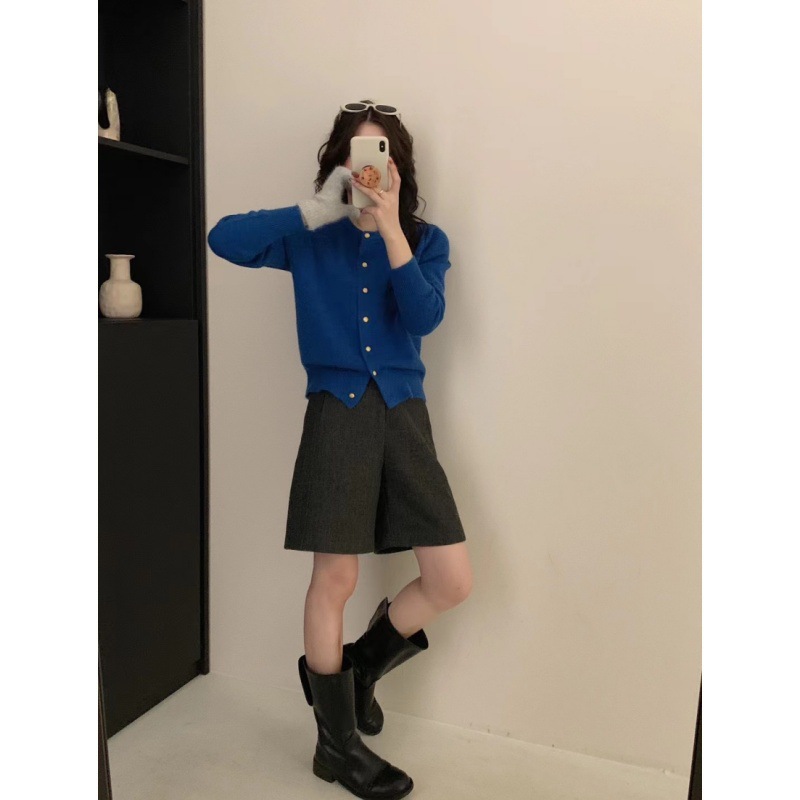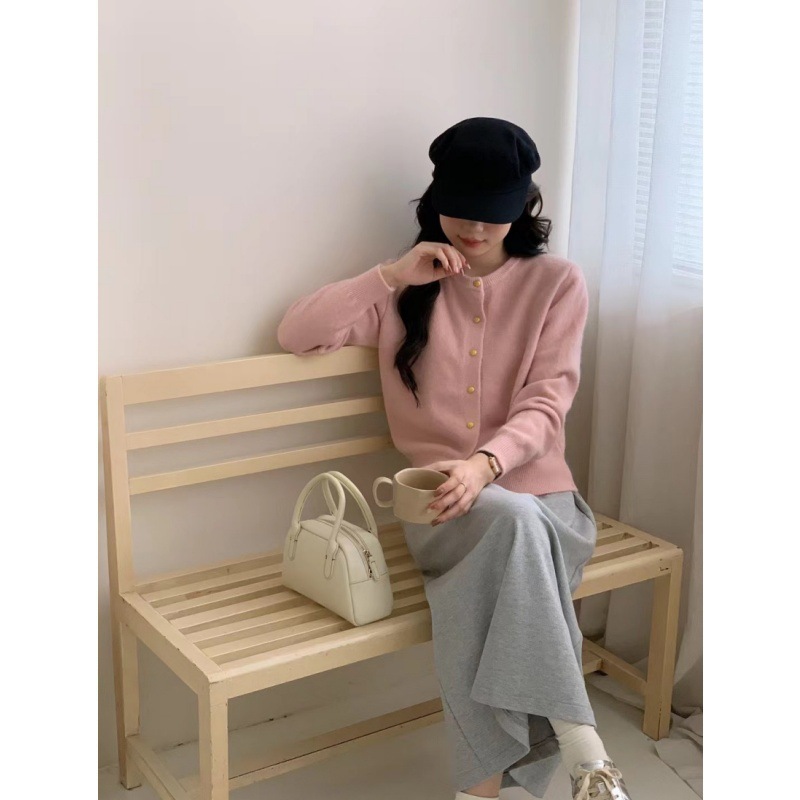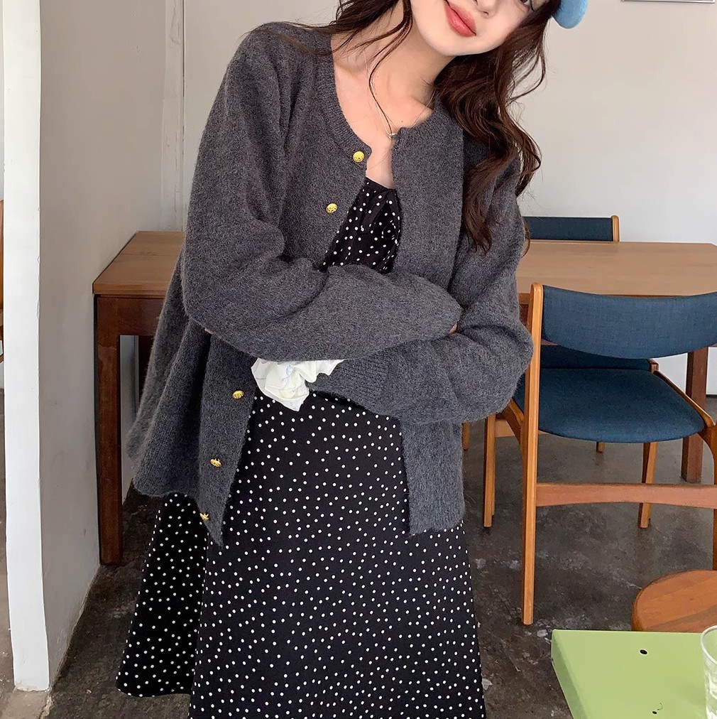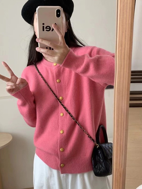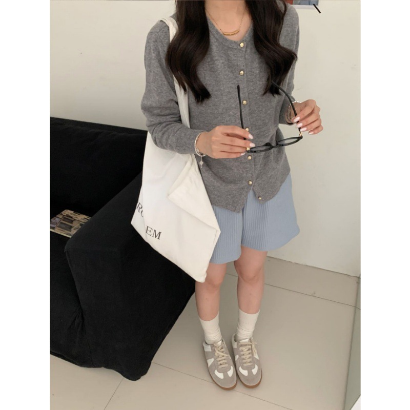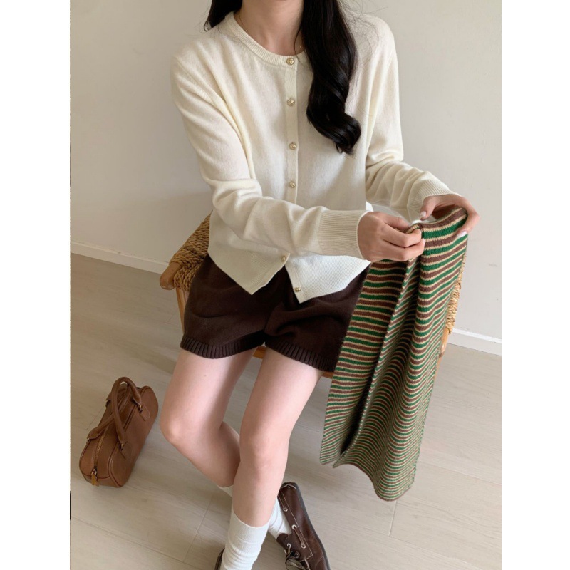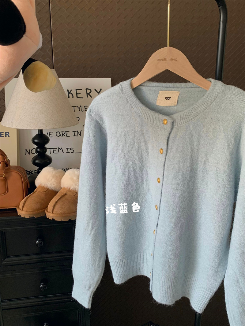 2025년 신상품! 한국 스타일 고품질 12색 여성 캔디 컬러 골드 버튼 기본형 라운드넥 니트 가디건스토어 가기