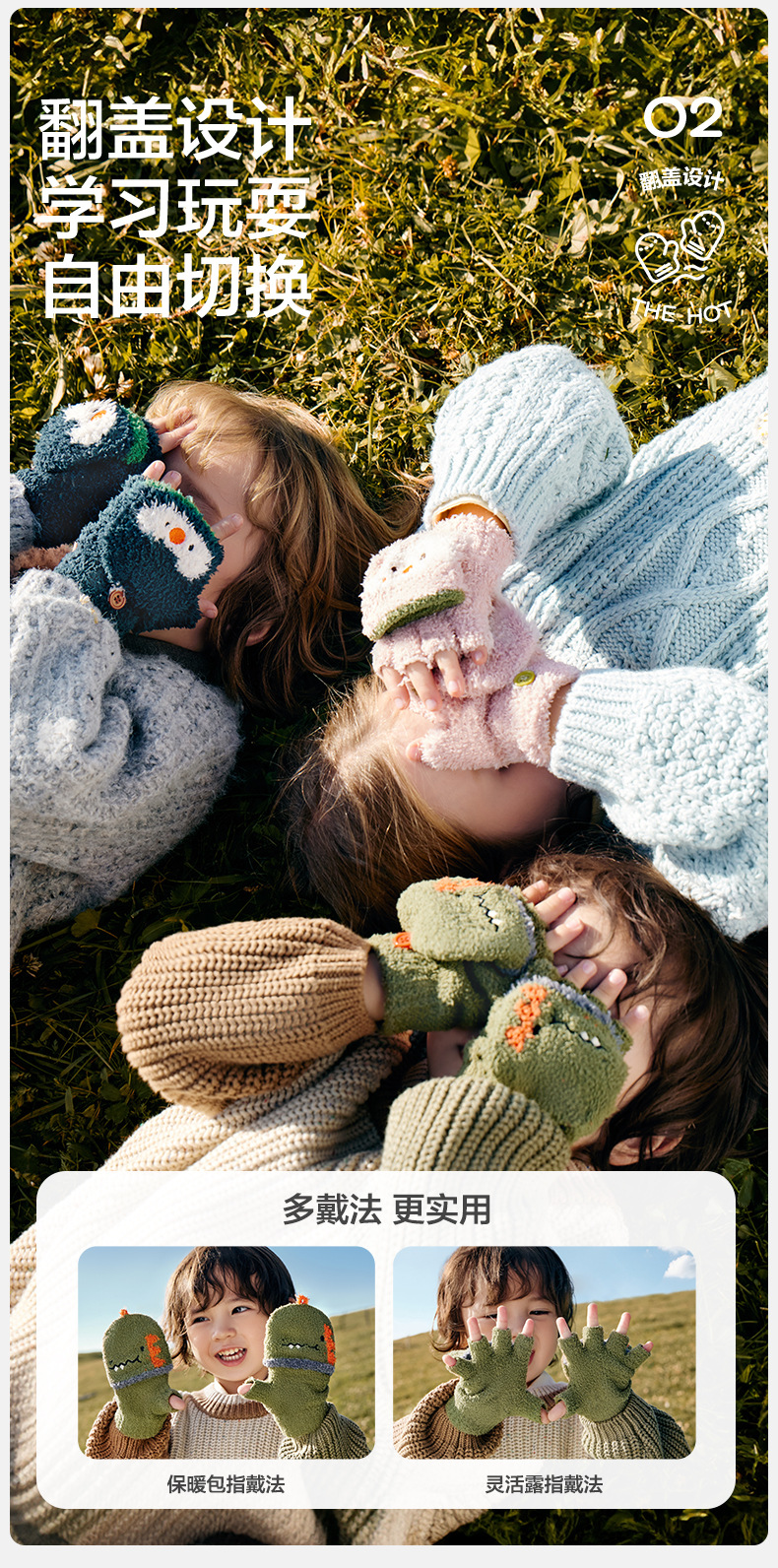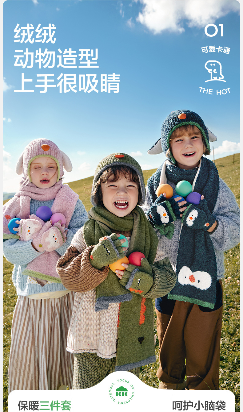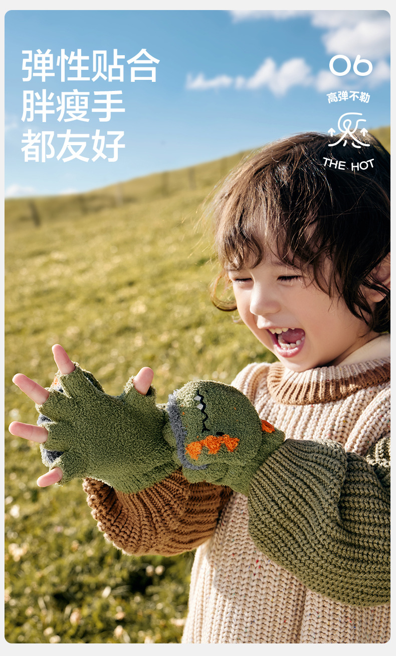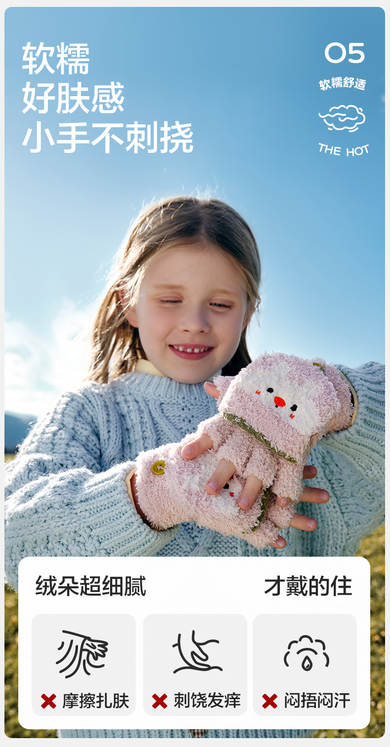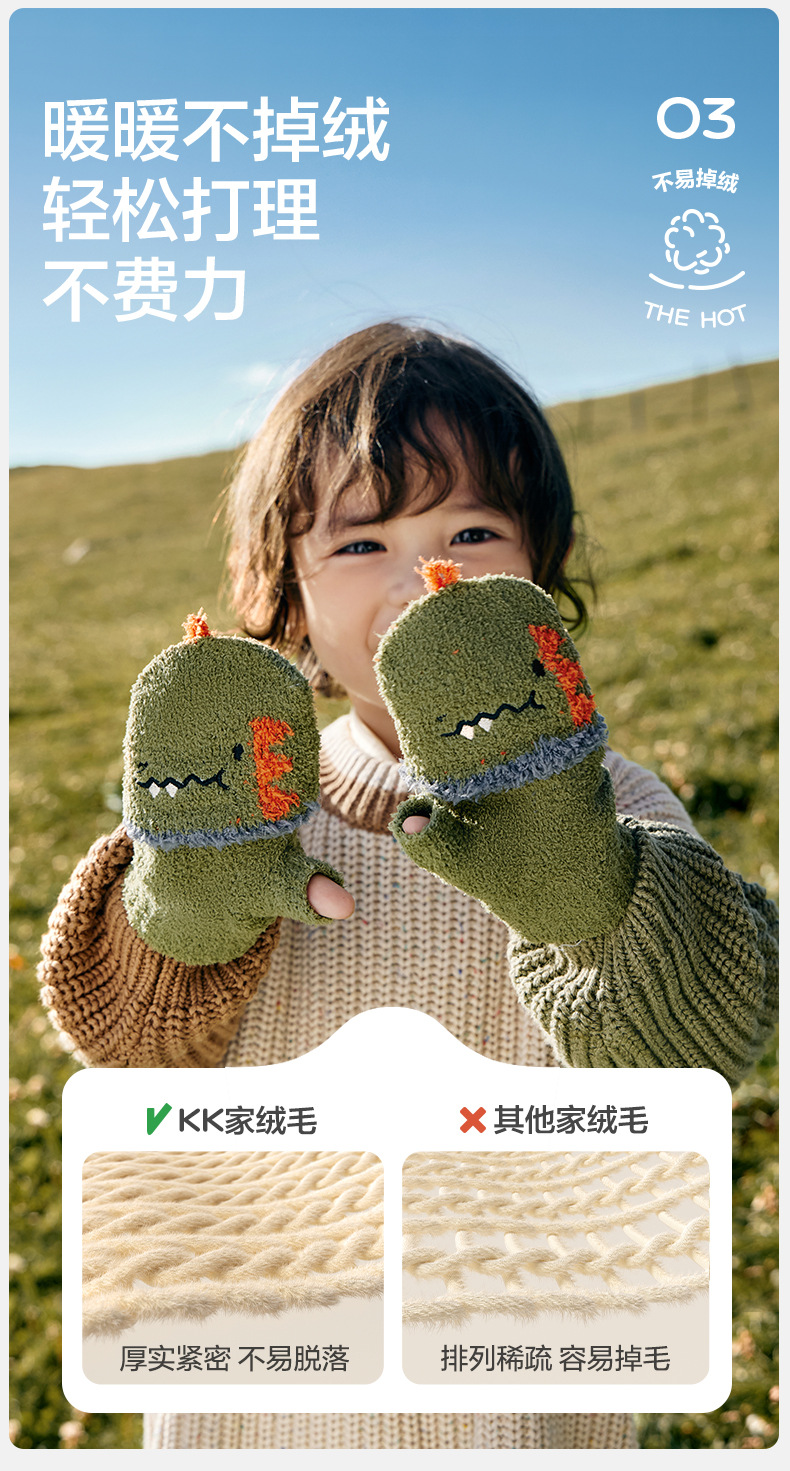 KK 트리 어린이 장갑 가을과 겨울 반 손가락 플립 오리지널 원사 따뜻한 반쪽 벨벳 글쓰기 장갑