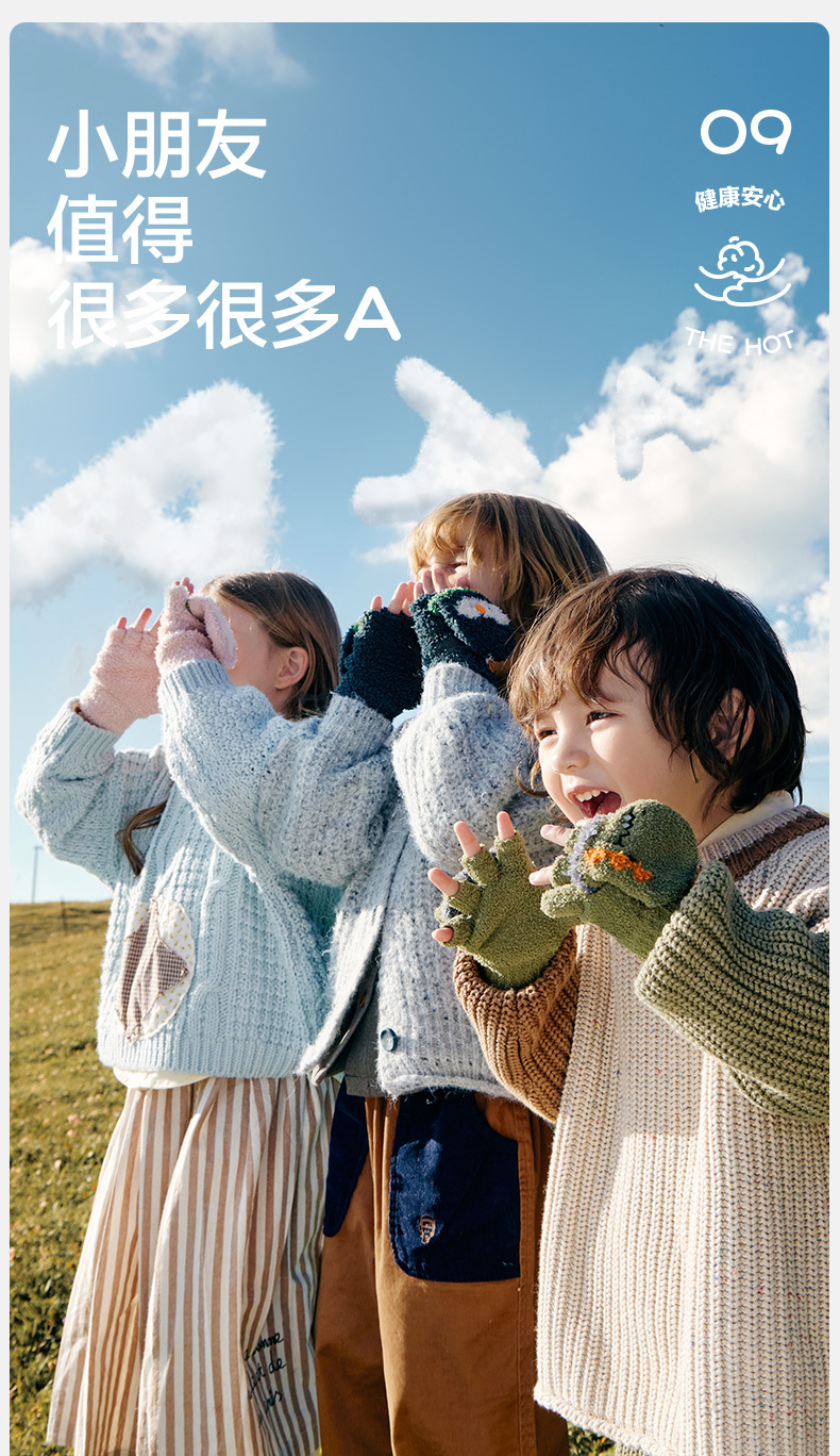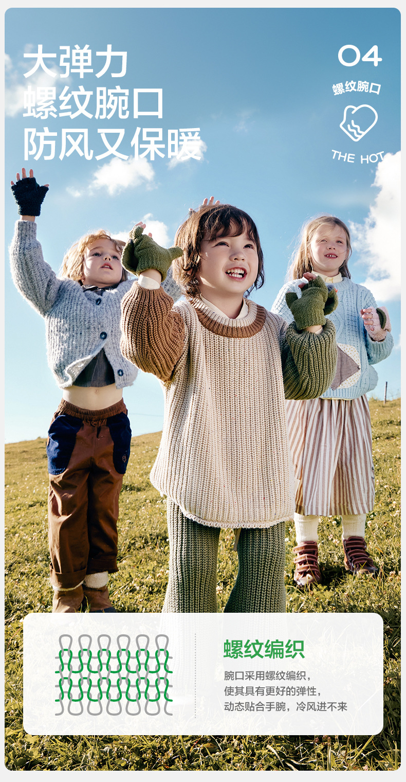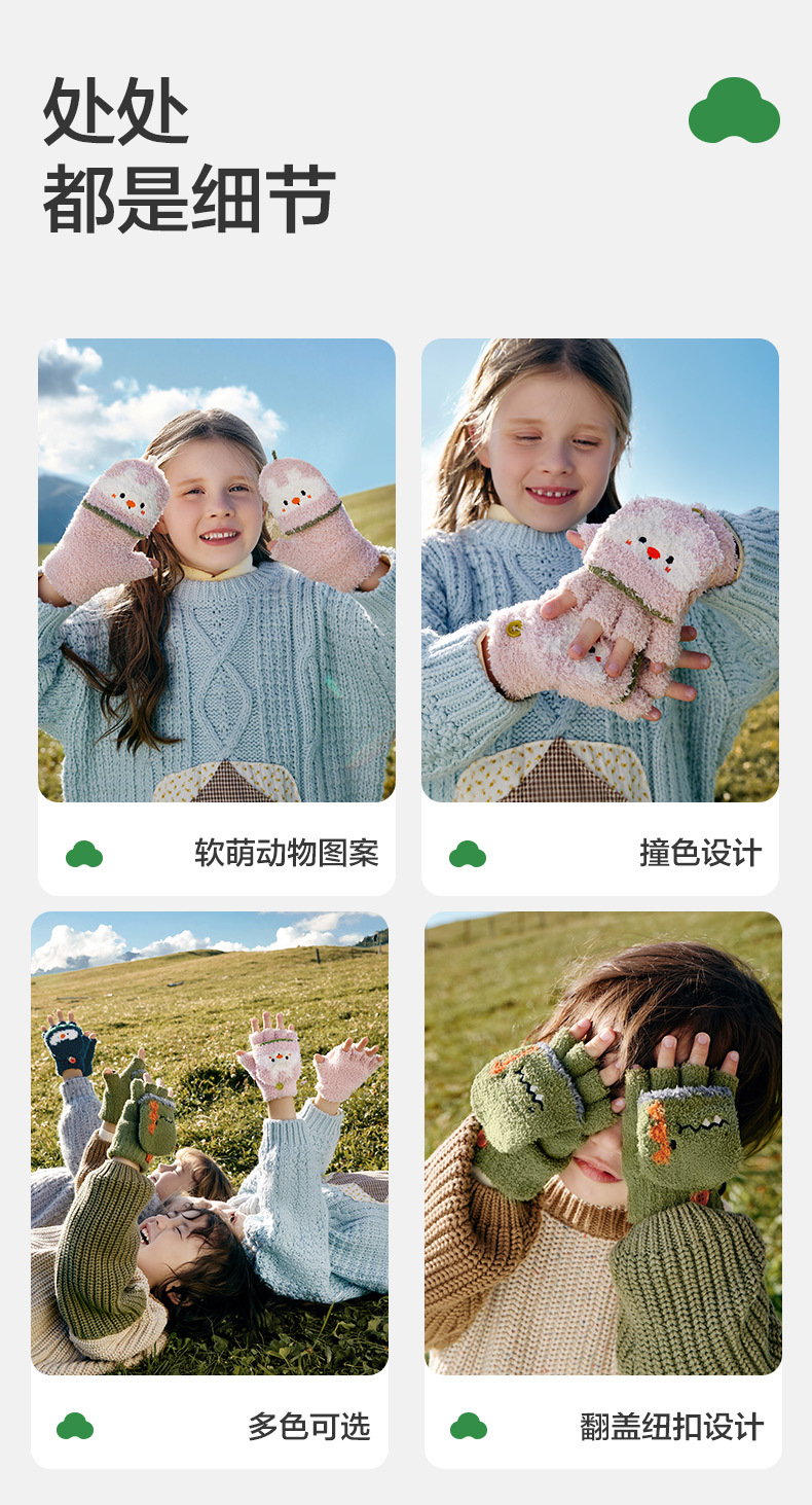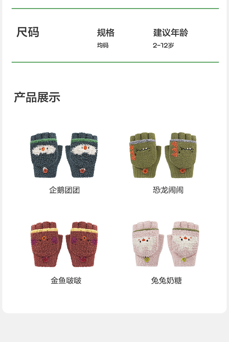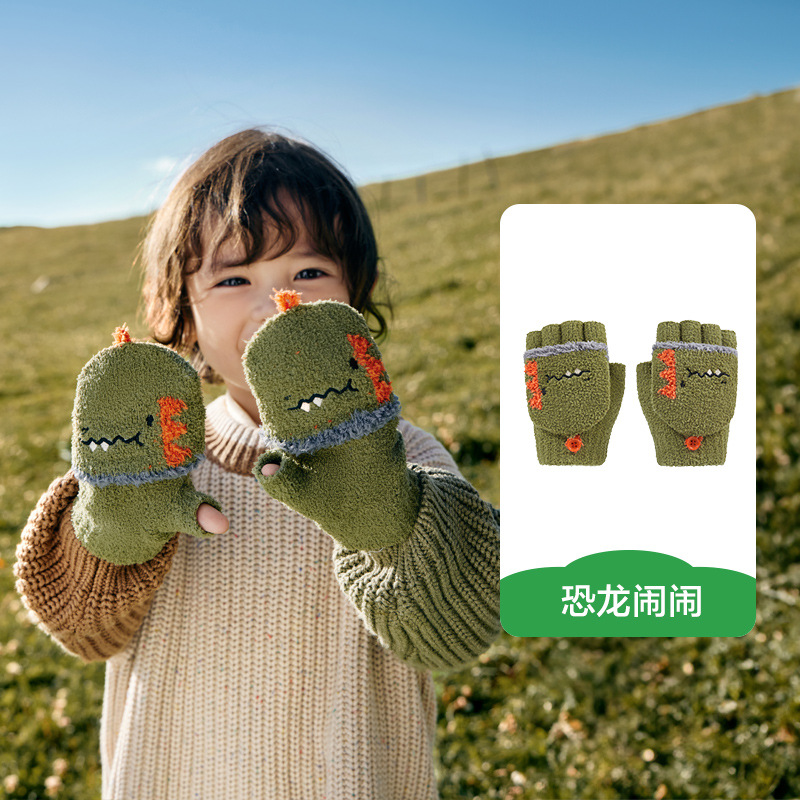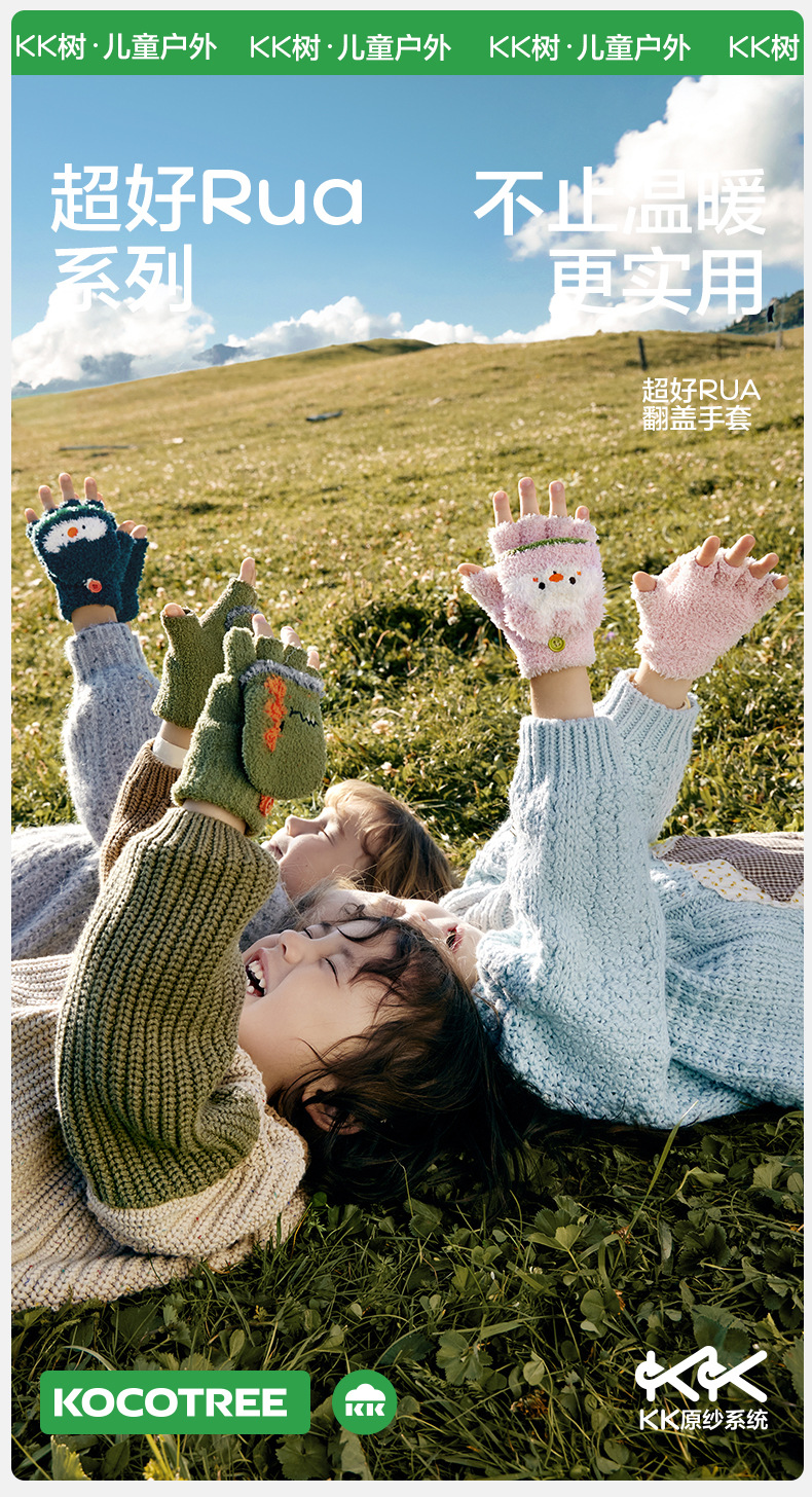 KK 트리 어린이 장갑 가을과 겨울 반 손가락 플립 오리지널 원사 따뜻한 반쪽 벨벳 글쓰기 장갑스토어 가기