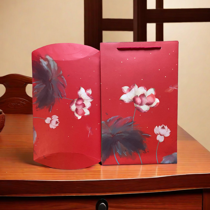 • 붉은 연꽃 선물 상자(회색 카드), 내부 상자 + 핸드백(권장)