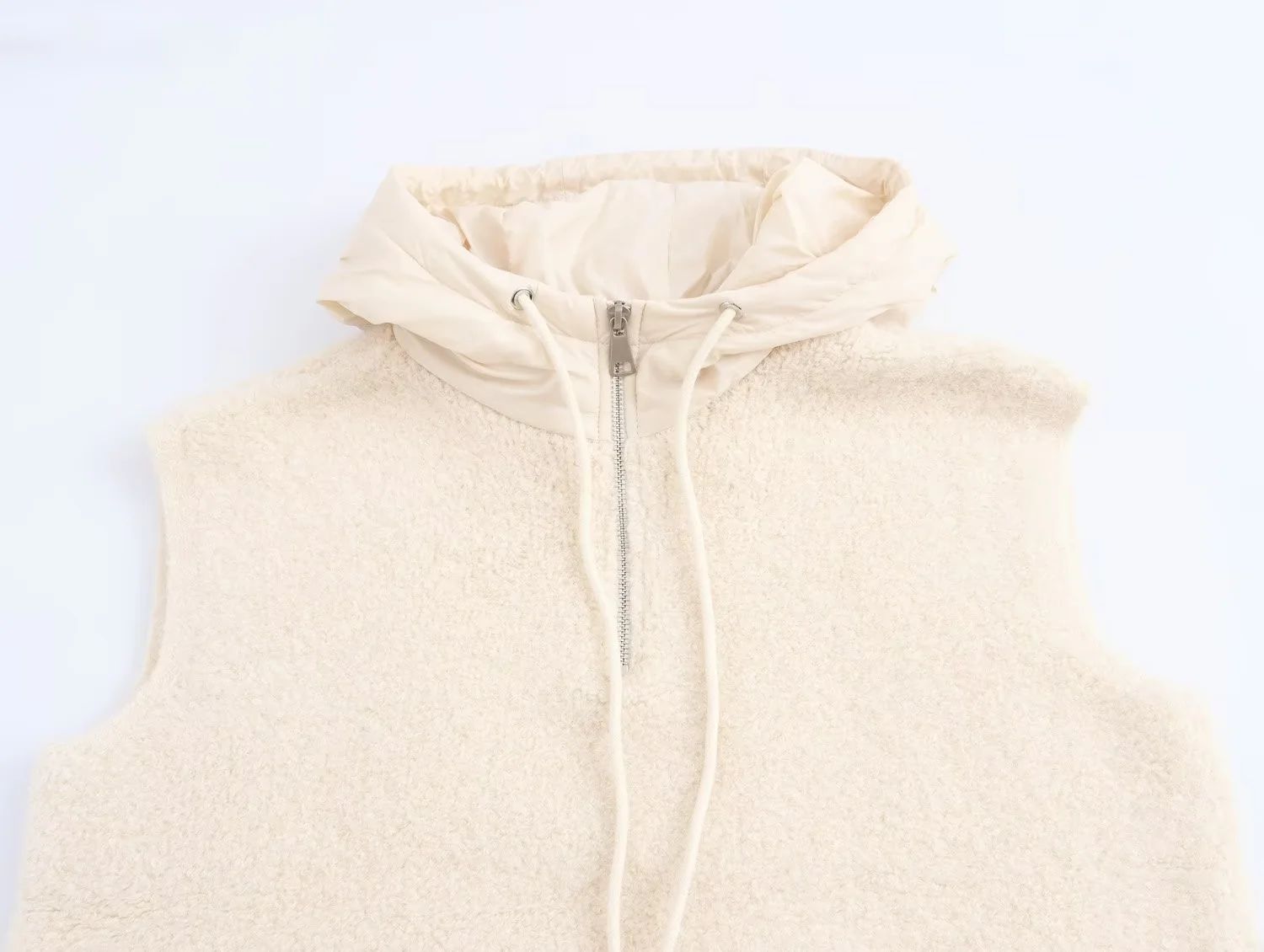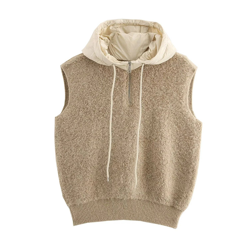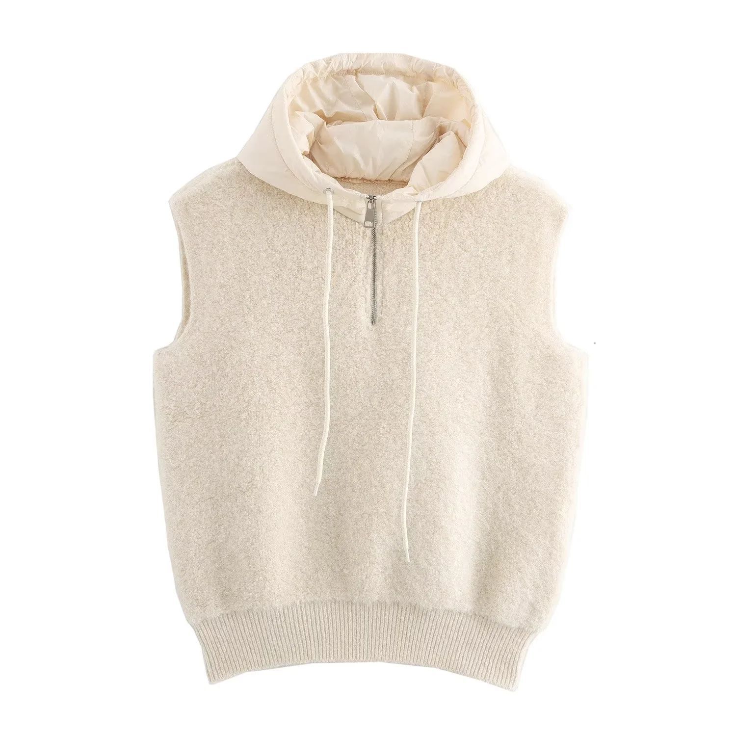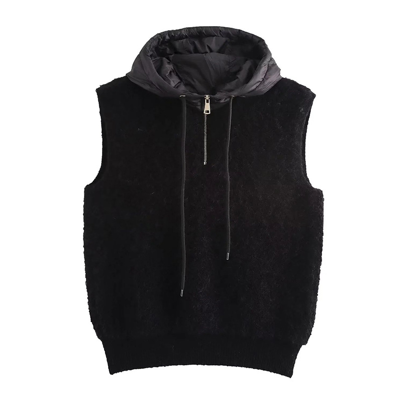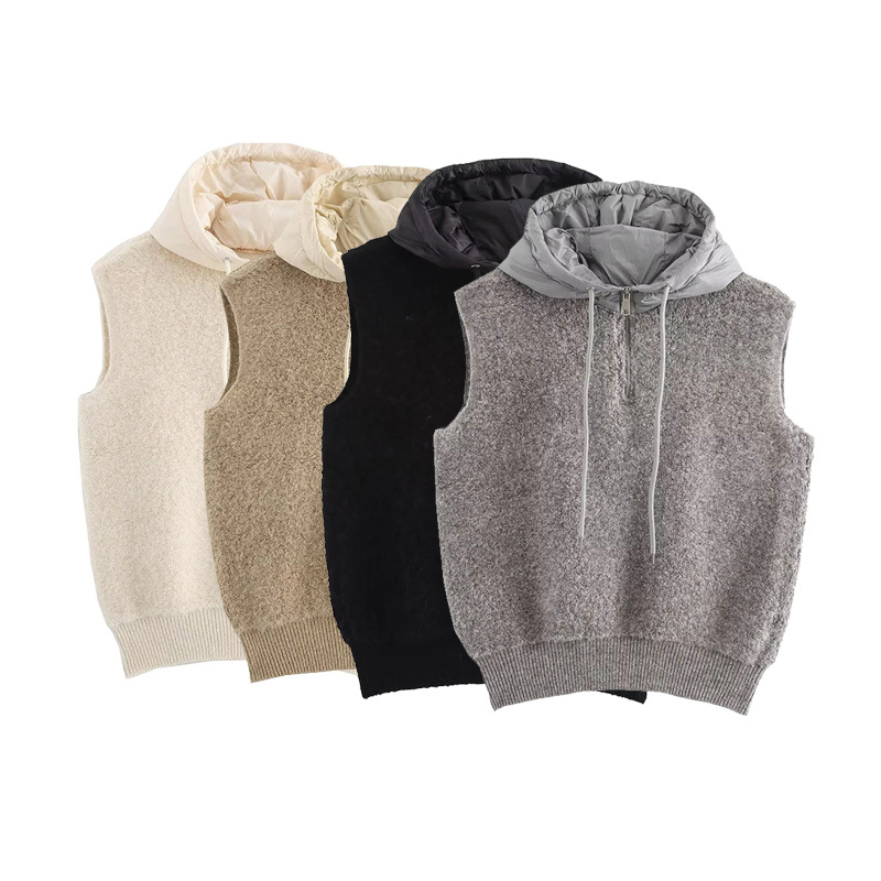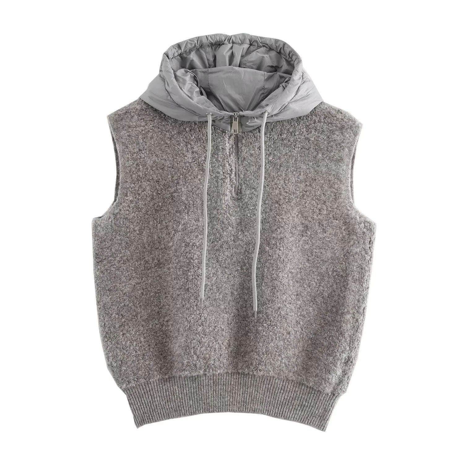 ZADATA 여성의 새로운 유럽과 미국의 프랑스 패션 타월 두꺼운 캐주얼 하프 지퍼 후드 니트 조끼 조끼스토어 가기