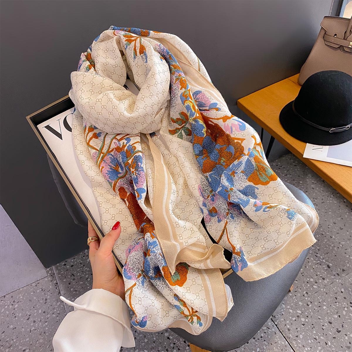 봄, 여름, 가을 새로운 한국식 면화 및 린넨 선 스크린 시대 감소 올 매치 유행 실크 스카프 목도리 이중 목적 다기능 거즈스토어 가기