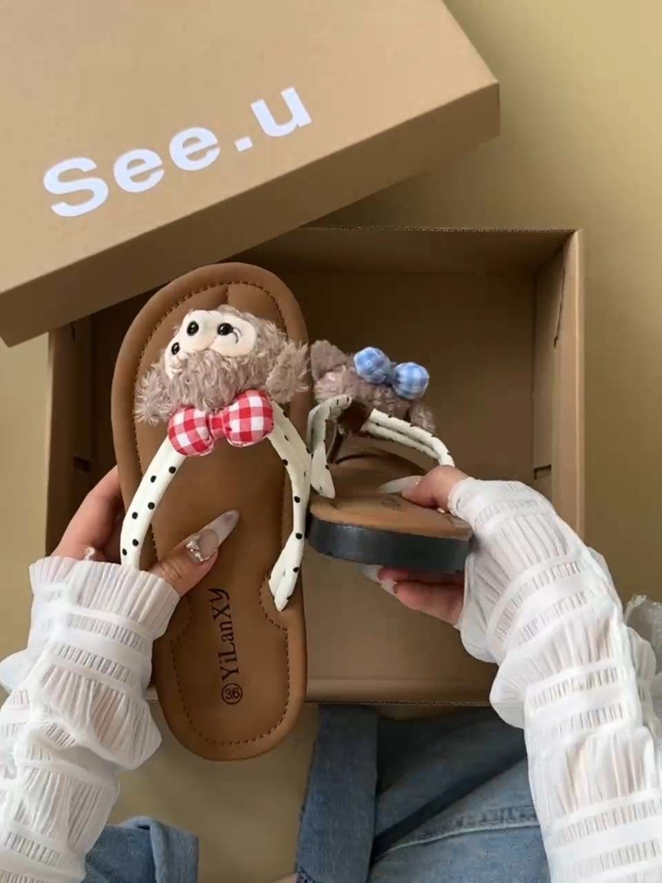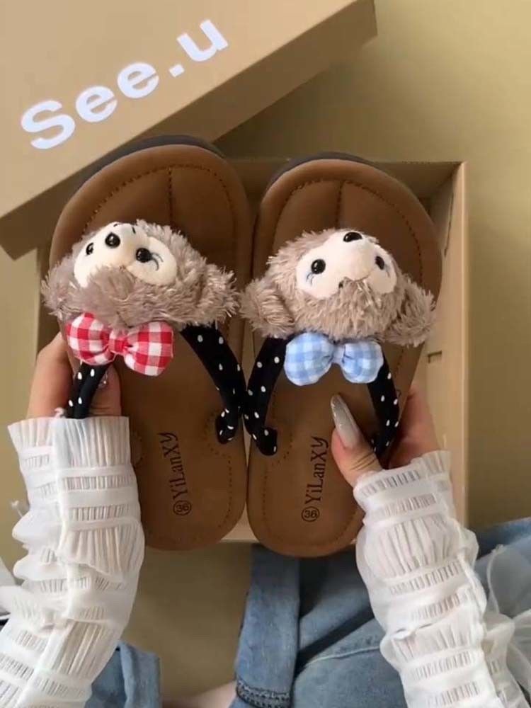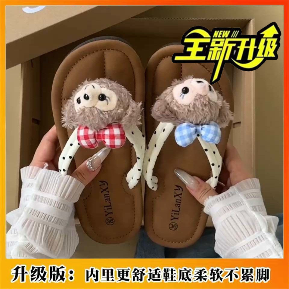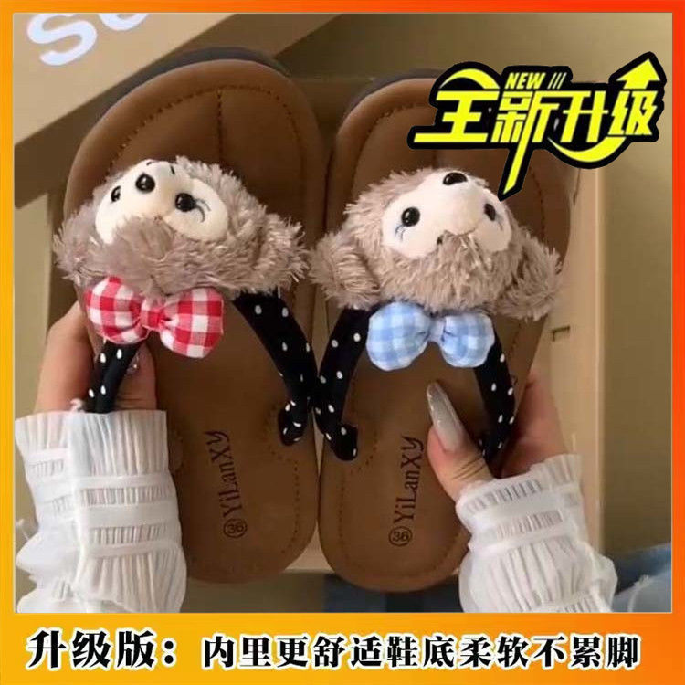 여름 새로운 올 매치 소프트 하단 쿨 비치 플랫 캐주얼 소녀 하트 베어 귀여운 플립 플롭 아웃도어 슬리퍼