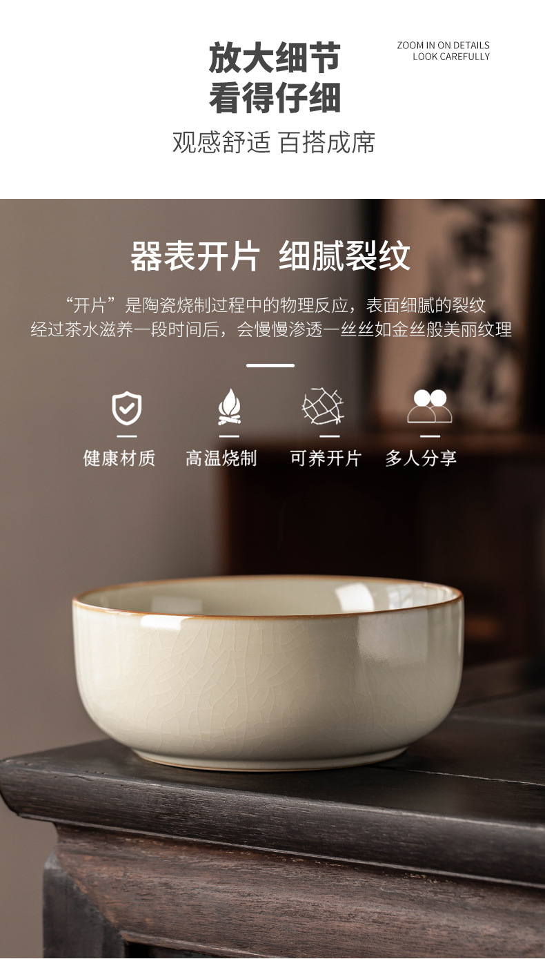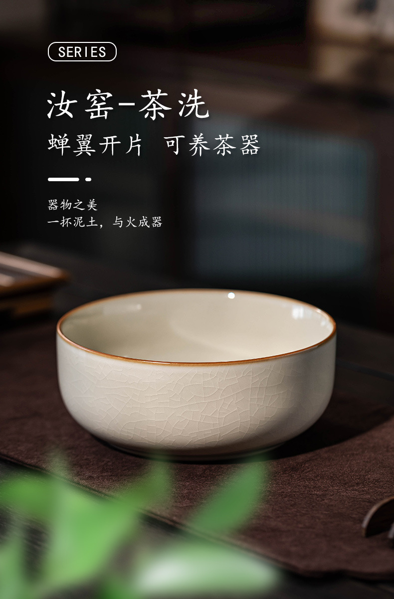 米黄汝窑茶洗杯洗水洗水盂茶渣缸陶瓷茶具配件洗茶器茶盆建水开片