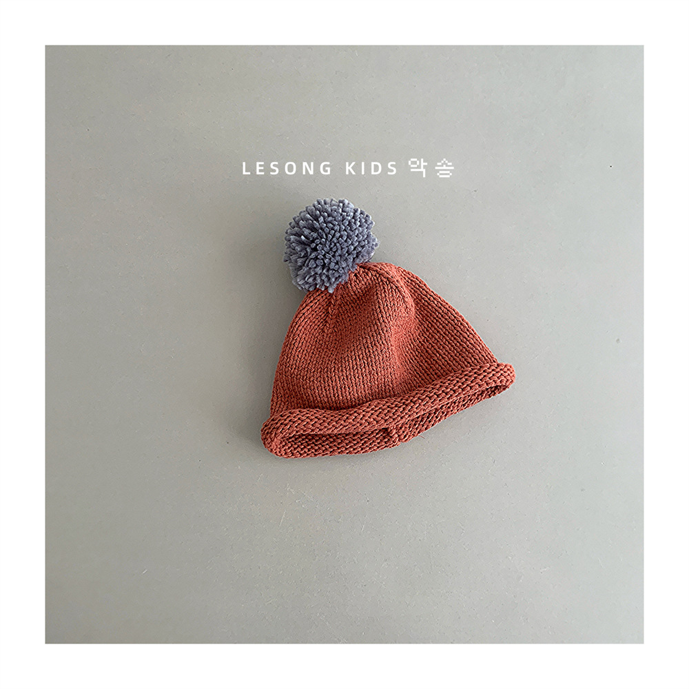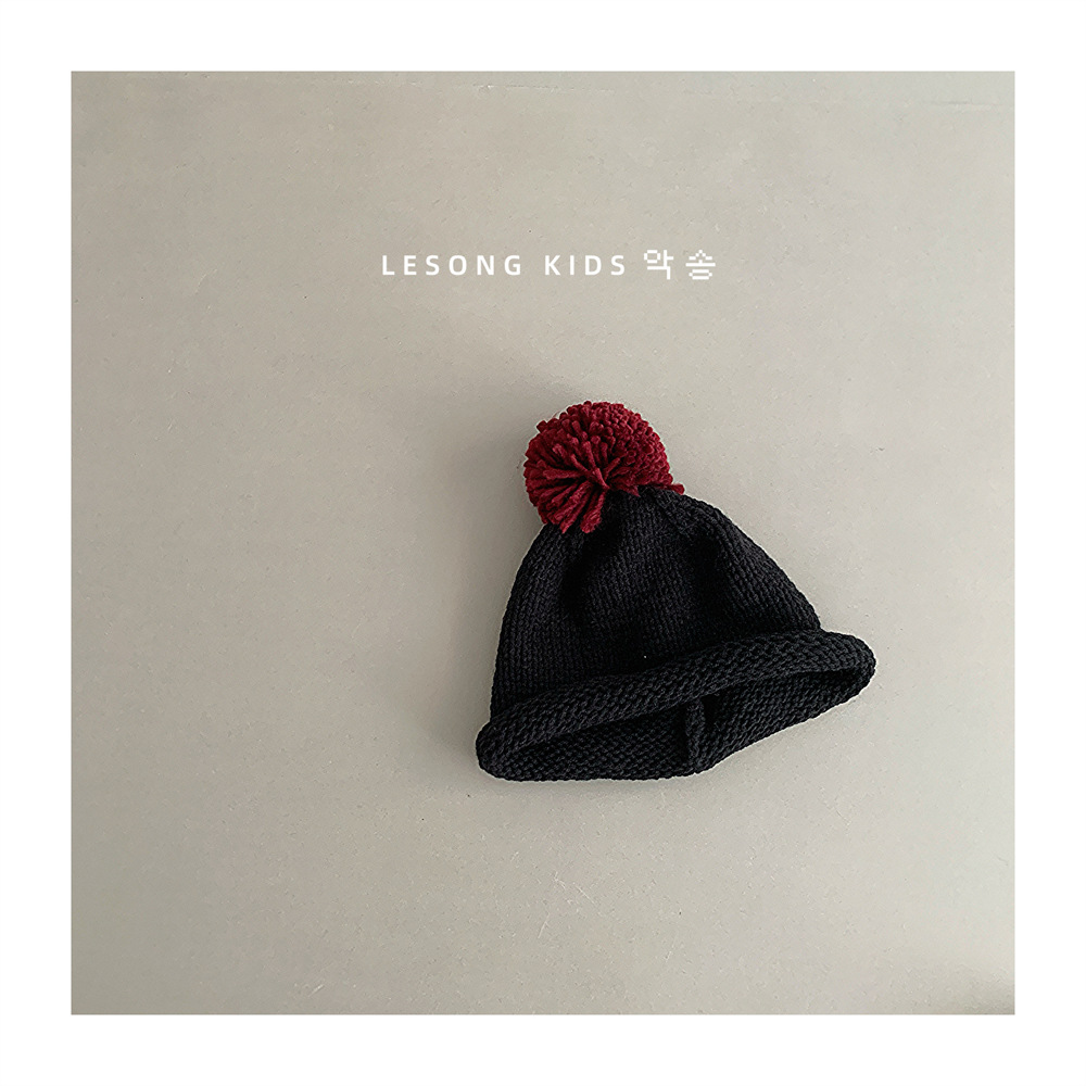 儿童INS卷边撞色大球球瓜皮帽毛线帽