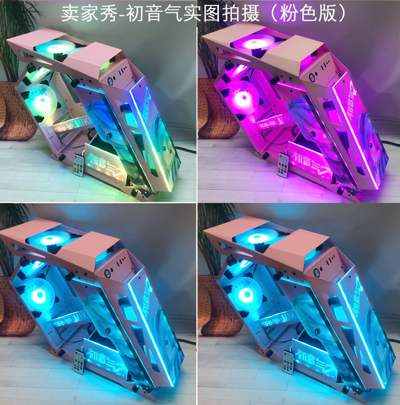 • 하츠네 미쿠 핑크 K 갓 컴퓨터 케이스(라이트 패널 4개 및 커넥터 포함)