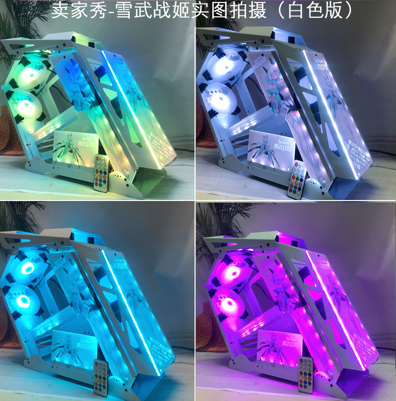 • 스노우 댄스 전쟁기 모델 화이트 K 갓 컴퓨터 케이스(라이트 패널 4개 및 커넥터 포함)
