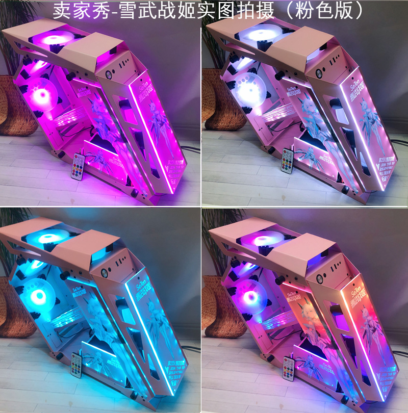 • 스노우 댄스 전쟁기 핑크 K 갓 컴퓨터 케이스(라이트 패널 4개 및 커넥터 포함)