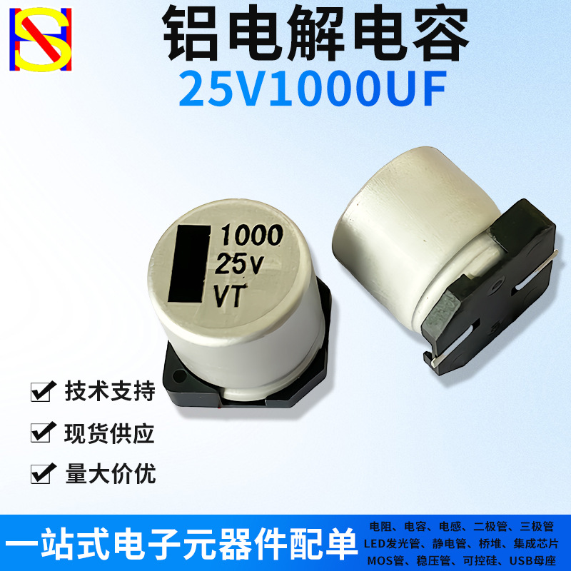 25V1000UF 패치 알루미늄 전해 커패시터 원 스톱 전자 부품 단일 SMD 패치 커패시터스토어 가기