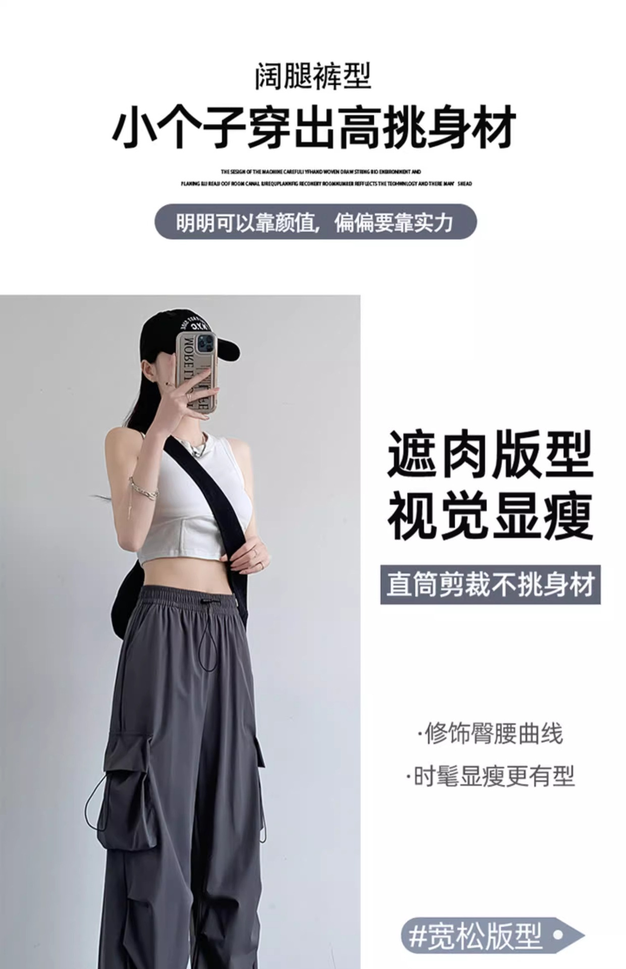 [공식 그림] 화물 바지 여성의 2024 새로운 충전 넓은 다리 바지 여름 얇은 등산 바지 핑크
