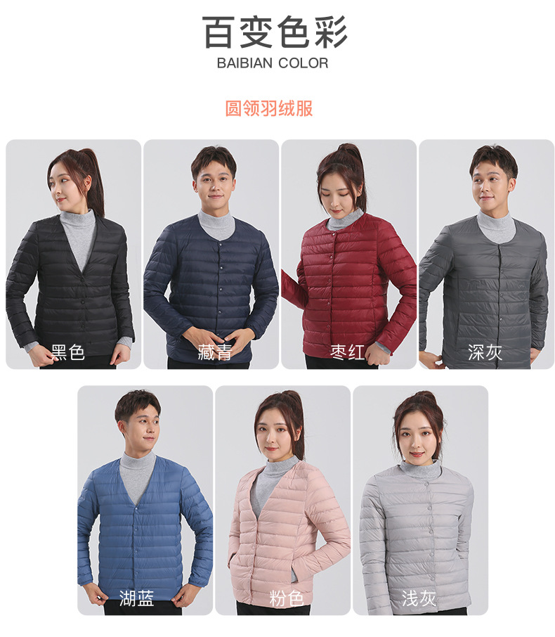 겨울 다운 재킷 사용자 정의 인쇄 로고 단어 90 흰색 오리 다운 빛과 휴대용 팀 그룹 기업스토어 가기