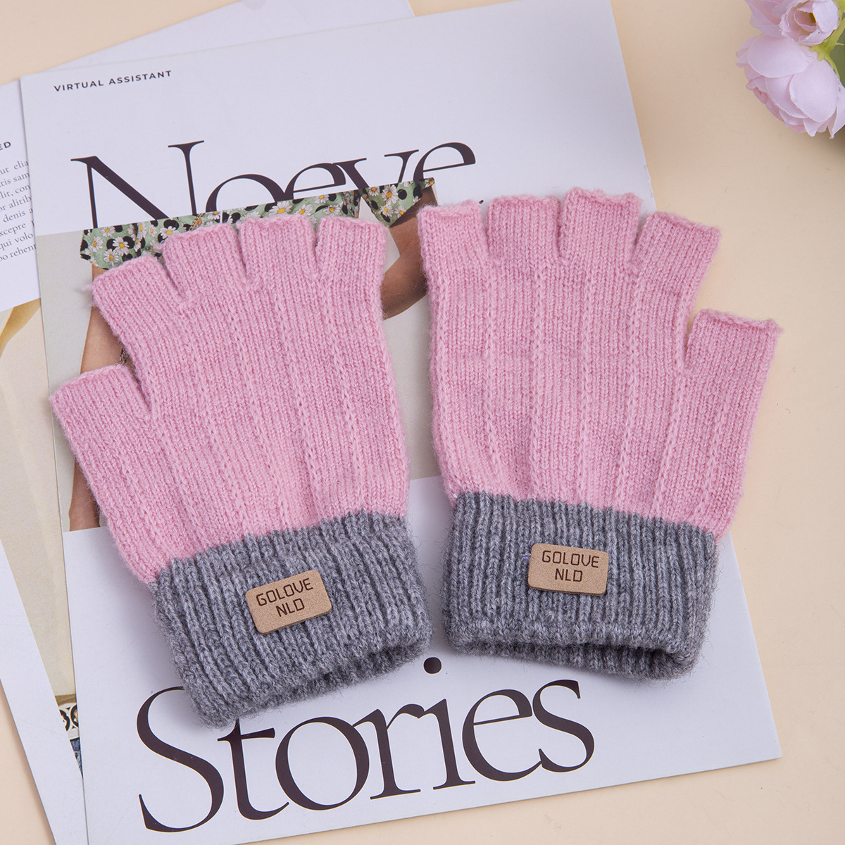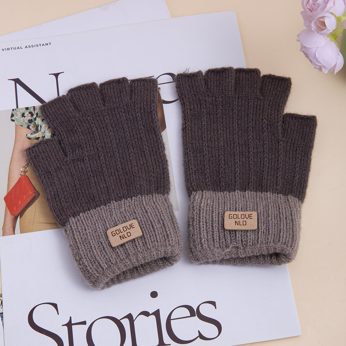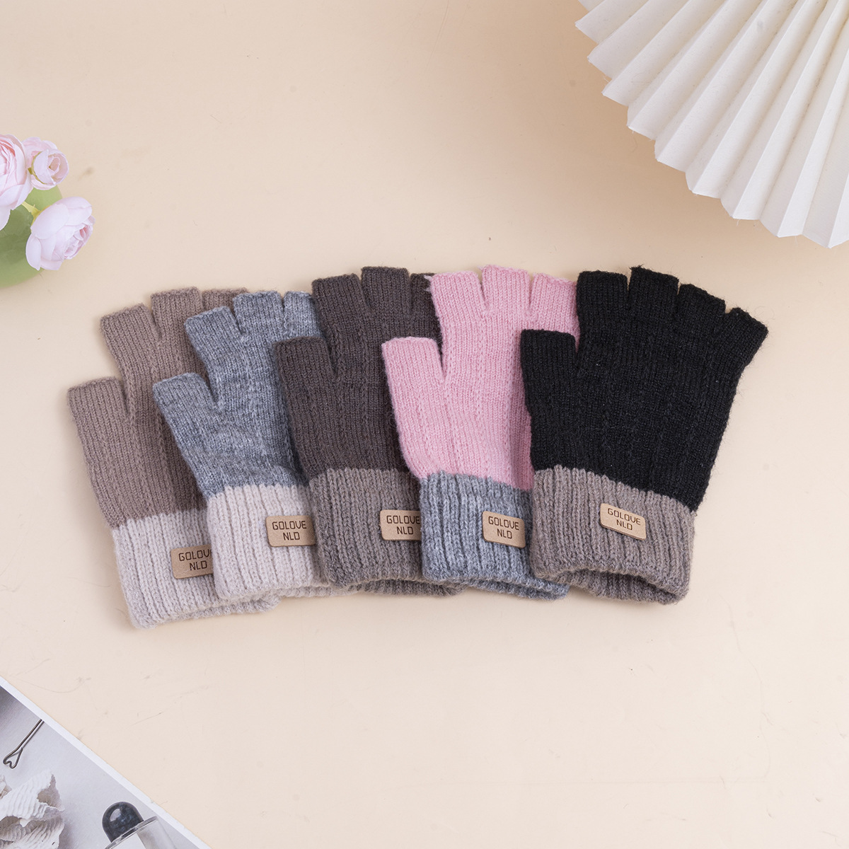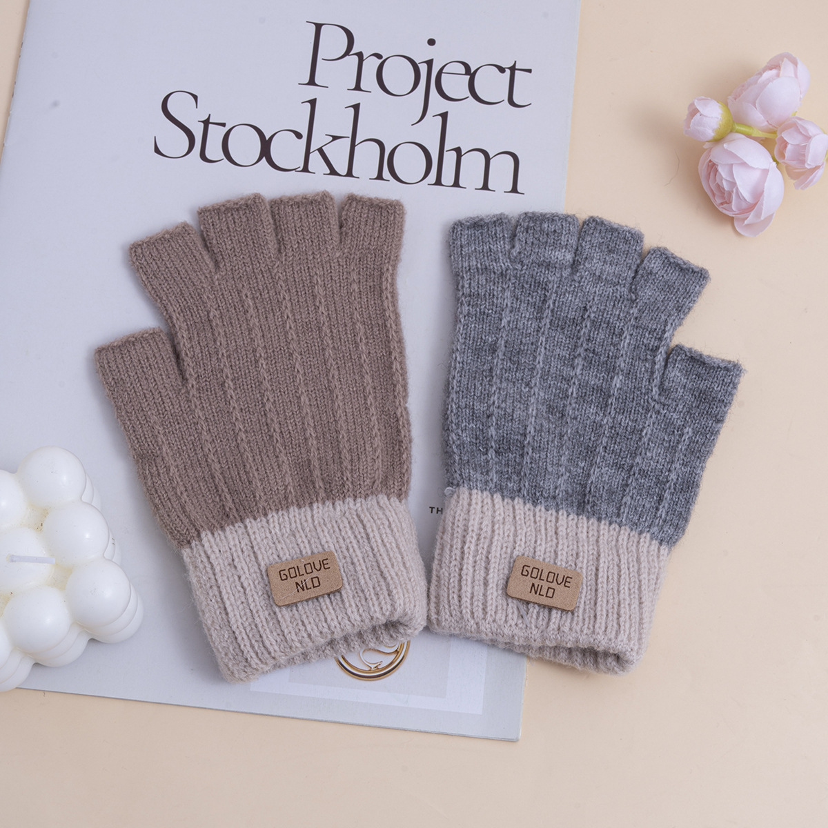 새로운 패션 하프 핑거 로고 더블 컬러 자카드 로고 장갑 라이딩 장갑 니트 따뜻한 야외 스포츠