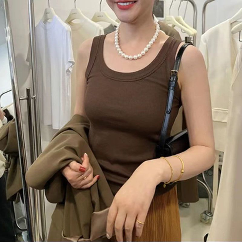 [공장 직판] 여성용 캐미솔 이너웨어 여름 2025 신상 레이서넥 가슴커버 아우터웨어 베이스탑스토어 가기