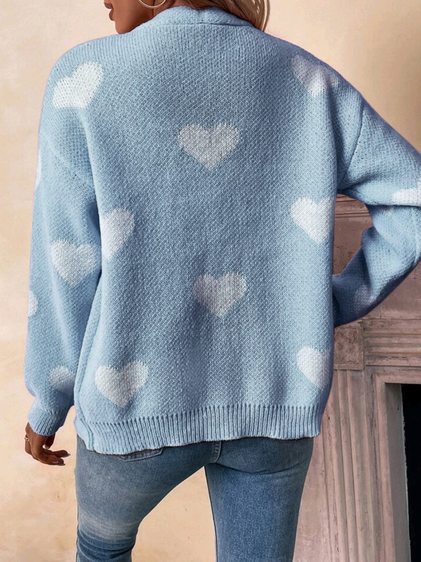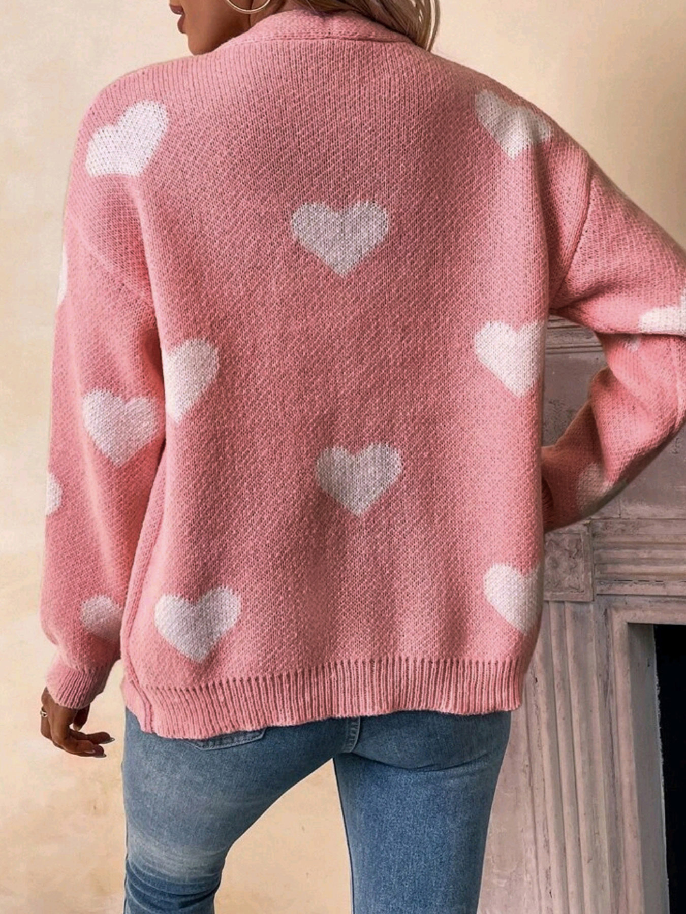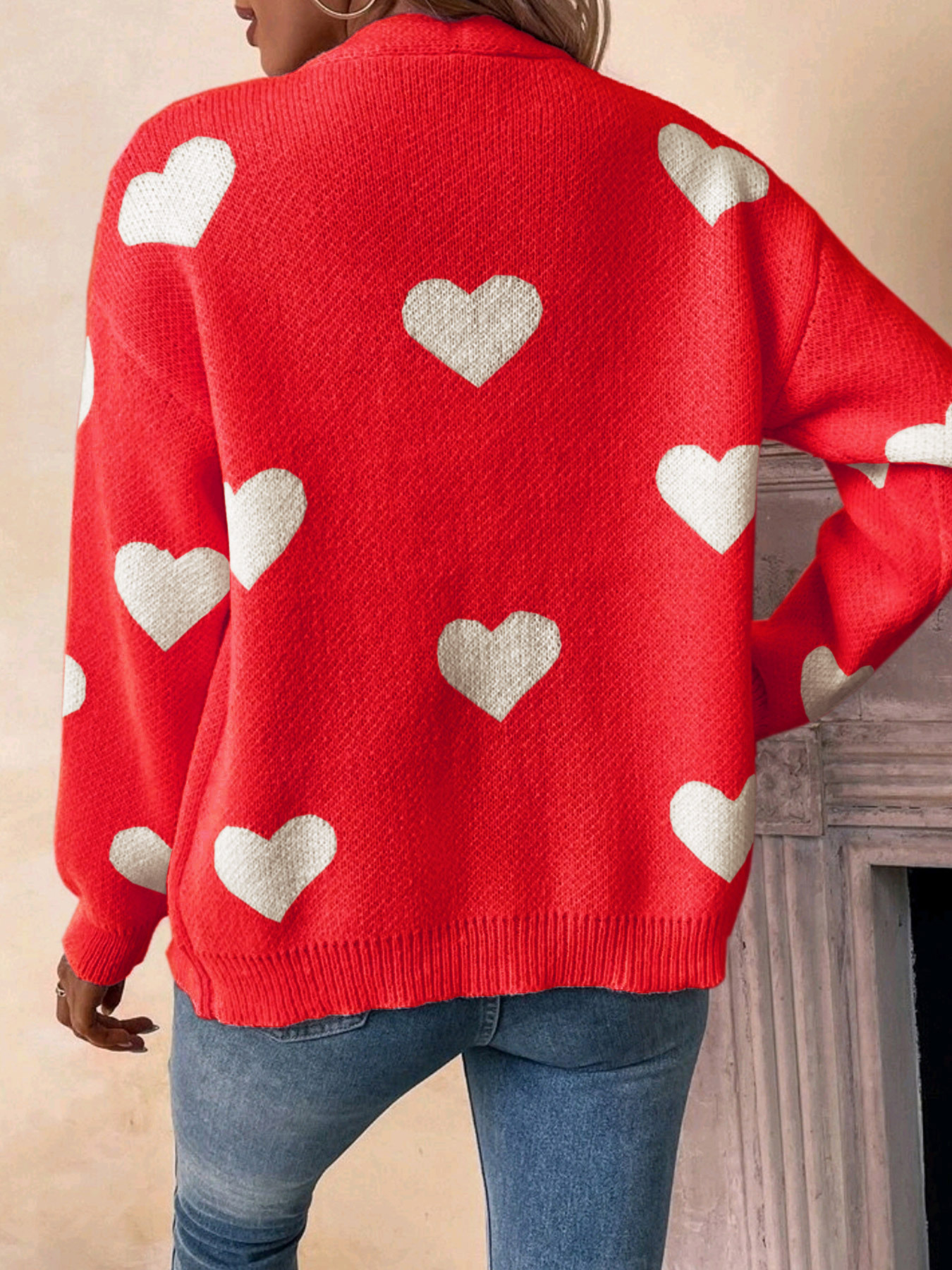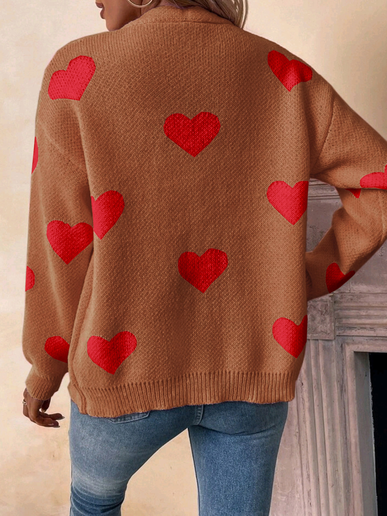 해외 무역 국경 유럽 및 미국 아마존 소스 제조 업체 스웨터 여성 긴 소매 카디건 발렌타인 데이 사랑 패턴 니트웨어스토어 가기