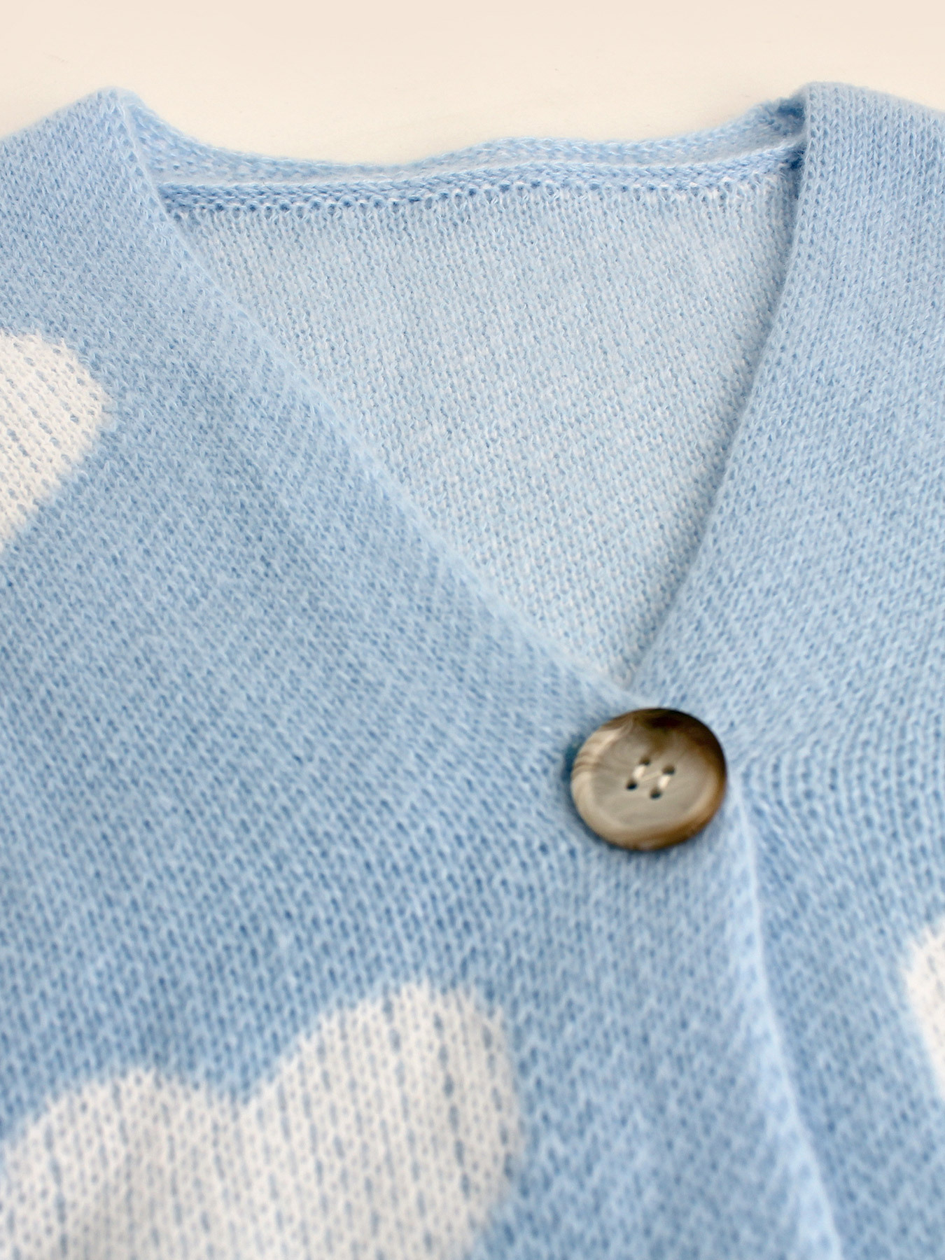 해외 무역 국경 유럽 및 미국 아마존 소스 제조 업체 스웨터 여성 긴 소매 카디건 발렌타인 데이 사랑 패턴 니트웨어