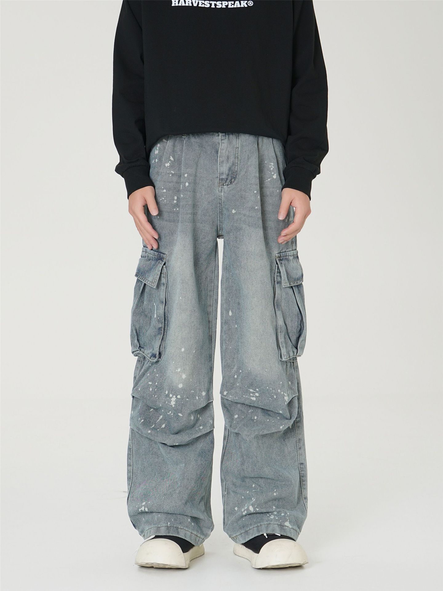 아메리칸 스타일 스트리트 레트로 툴링 청바지 남자 봄과 가을 2024 새로운 느슨한 패셔너블 캐주얼 올 매치 롱 바지스토어 가기