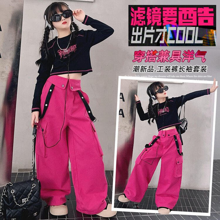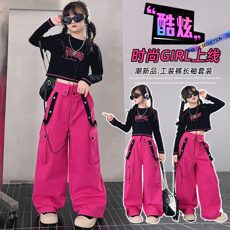 소녀 바지 세트 2024 년 새 어린이 와이드 레그 팬츠 봄과 가을 소녀 바닥 셔츠 가을 투피스 세트스토어 가기