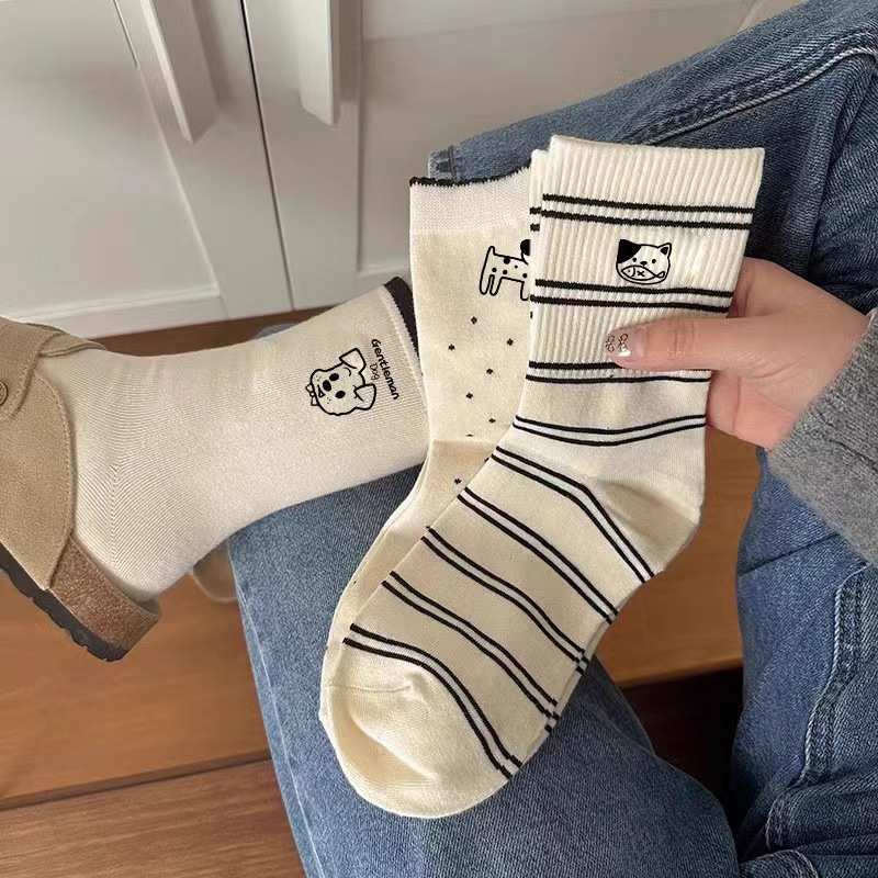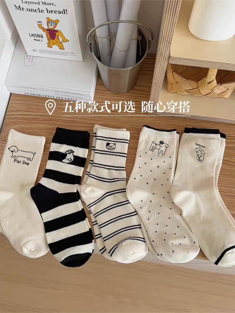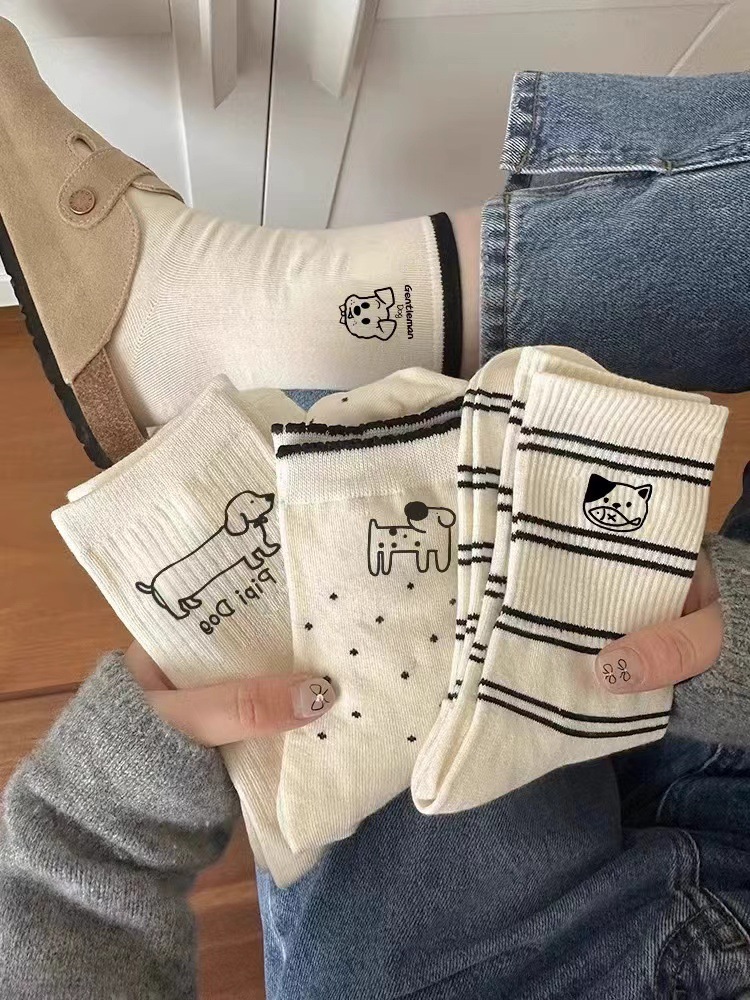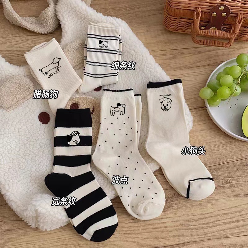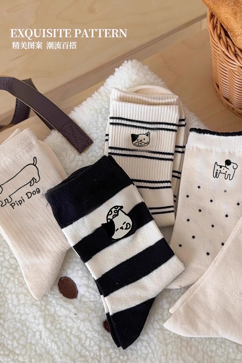 줄무늬 만화 강아지 양말 여성 양말 가을과 겨울 귀여운 일본 여성 양말 한국 스타킹 도매스토어 가기