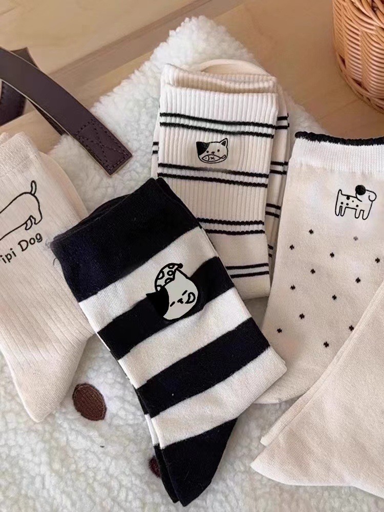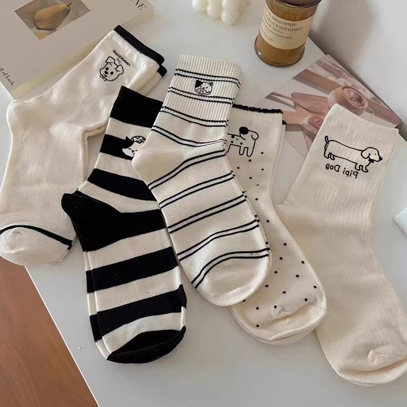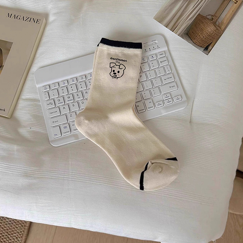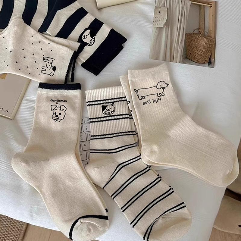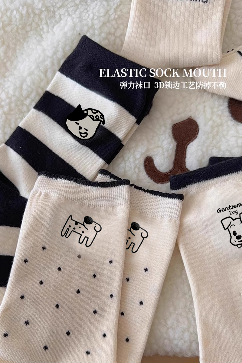줄무늬 만화 강아지 양말 여성 양말 가을과 겨울 귀여운 일본 여성 양말 한국 스타킹 도매