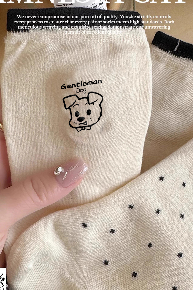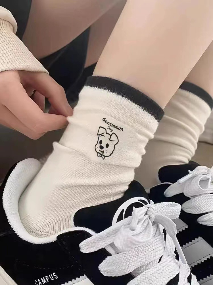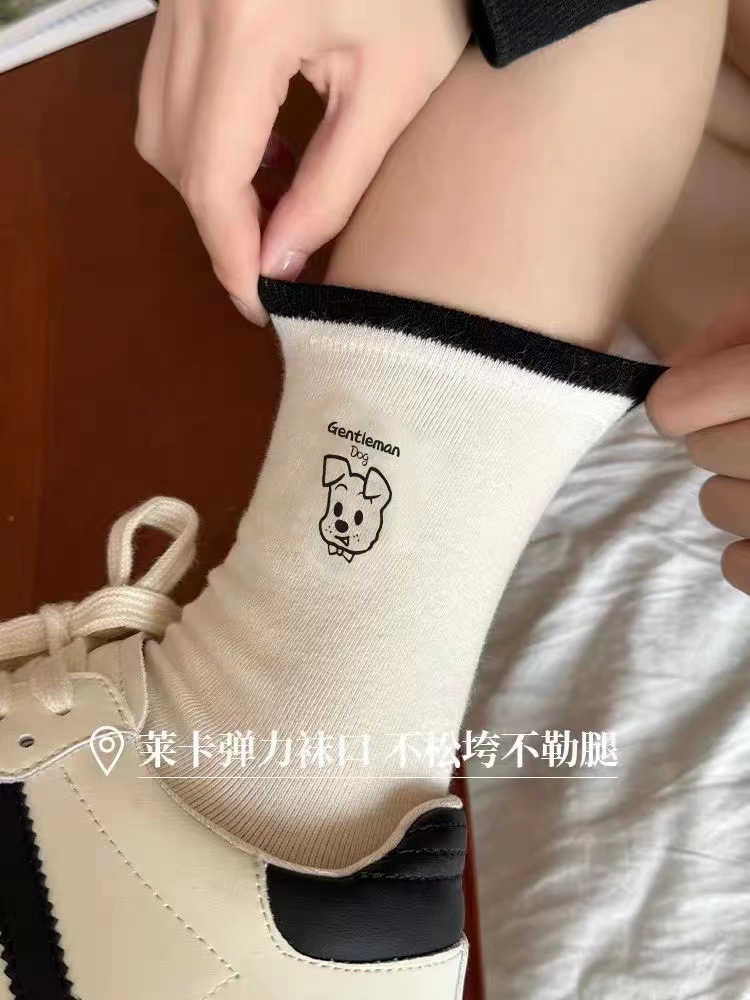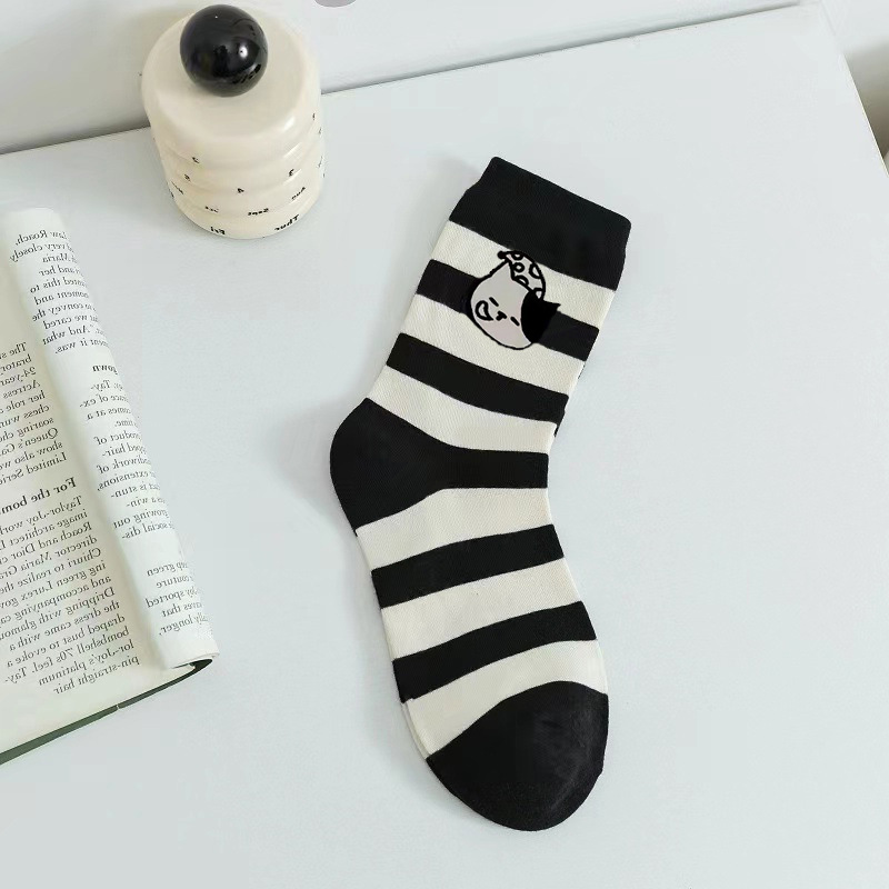 줄무늬 만화 강아지 양말 여성 양말 가을과 겨울 귀여운 일본 여성 양말 한국 스타킹 도매
