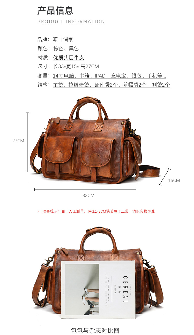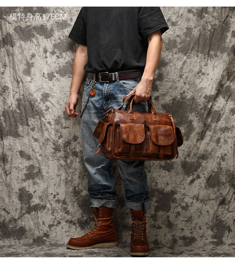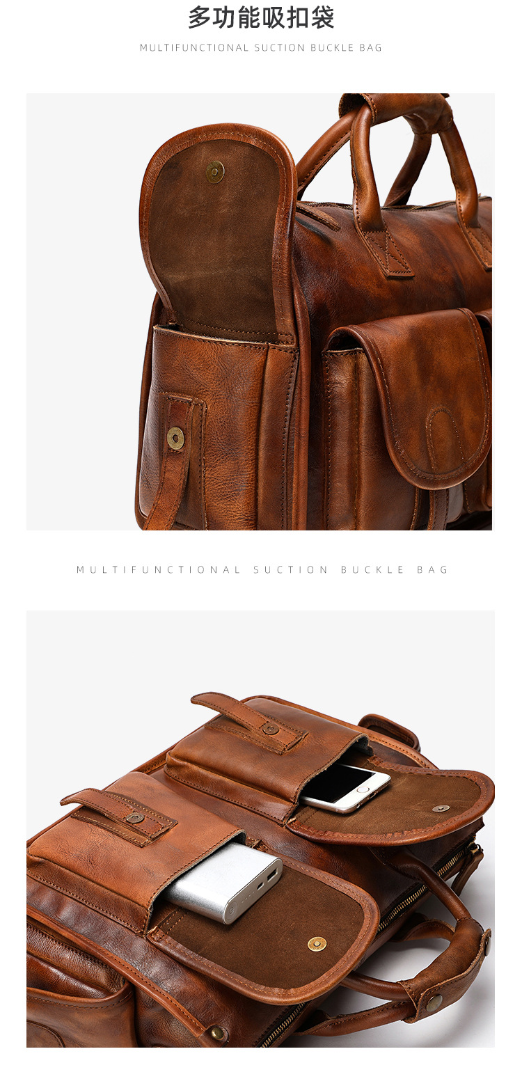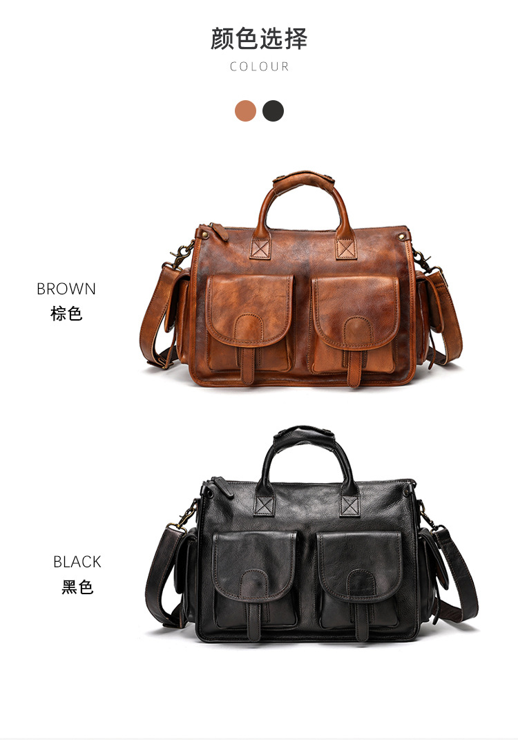 텍스처드 컬러 캐주얼 천연 가죽 핸드백 남성용 크로스백 식물성 무두질 가죽 컴퓨터 숄더백 해외 비즈니스 캐주얼스토어 가기