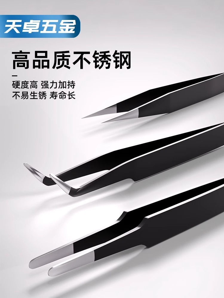 스테인레스 스틸 핀셋 정전기 방지 뾰족한 새의 둥지 머리 선택 휴대 전화 수리 도구 클립 블랙 헤드 여드름 종 속눈썹 이식