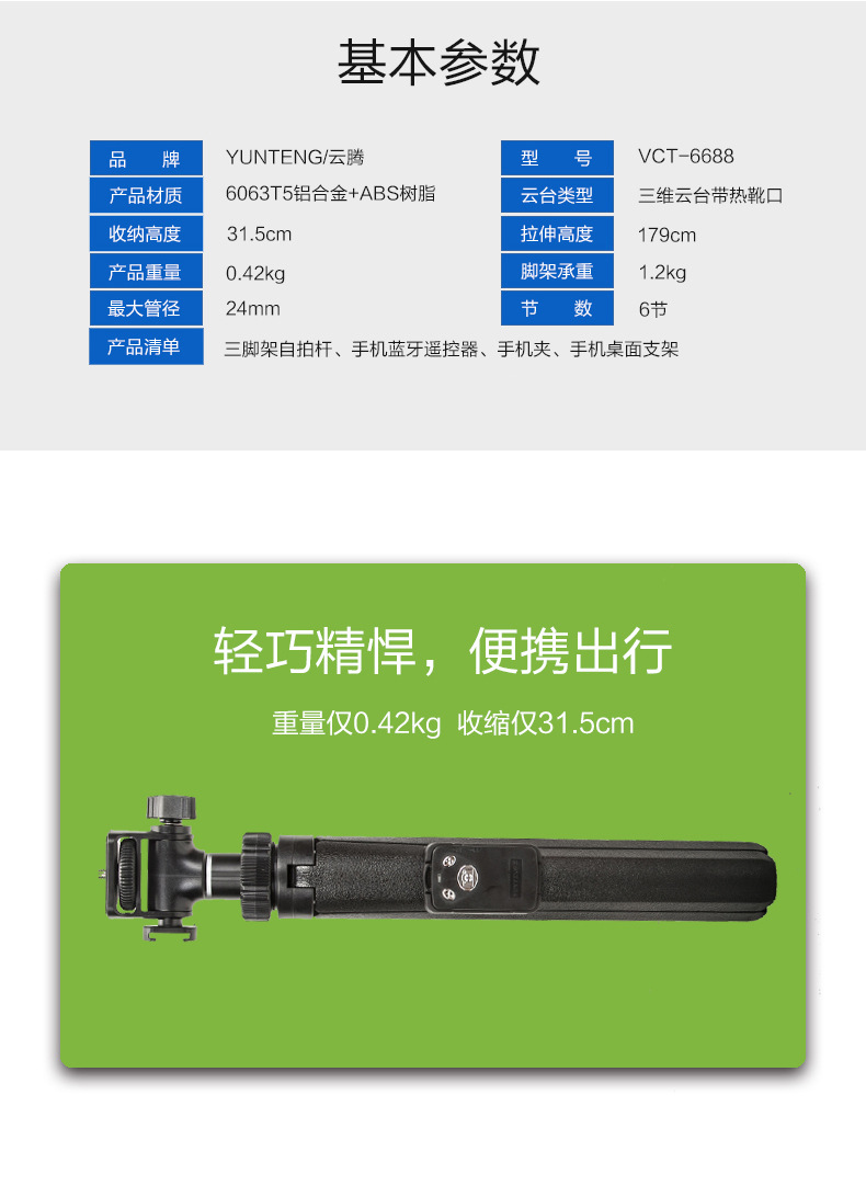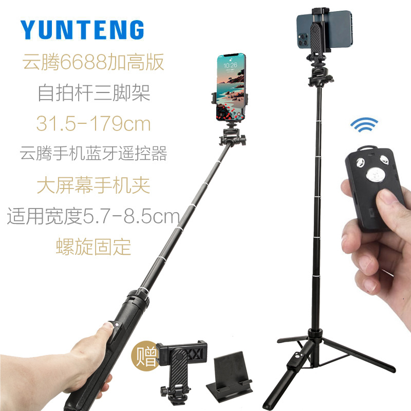 Yunteng 6688 휴대 전화 셀카 스틱 삼각대 통합 프레임 1.79 m 높은 휴대용 야외 블루투스 사진 원격 컨트롤러스토어 가기