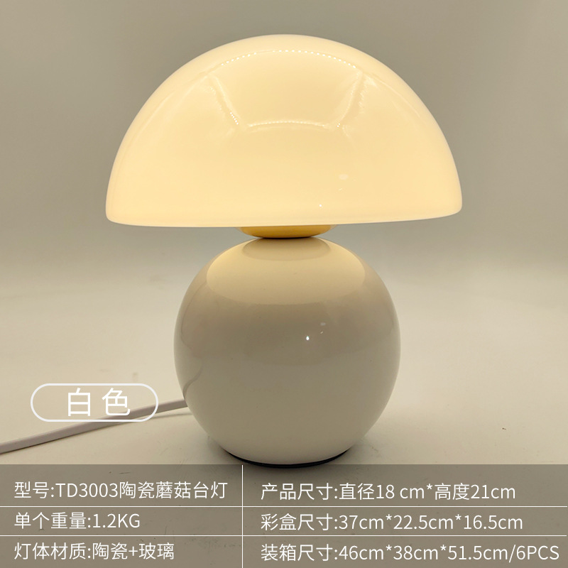 맞춤형 북유럽 크림 세라믹 버섯 테이블 램프 국경 간 장식 침대 옆 램프 고급 침실 창조적 인 분위기 야간 조명