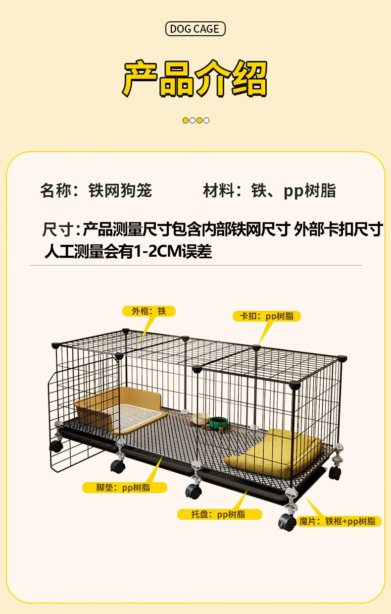 개 케이지 중형 및 작은 개 화장실 홈 볼드 암호화 애완 동물 강아지 케이지 울타리 코기 테디스토어 가기