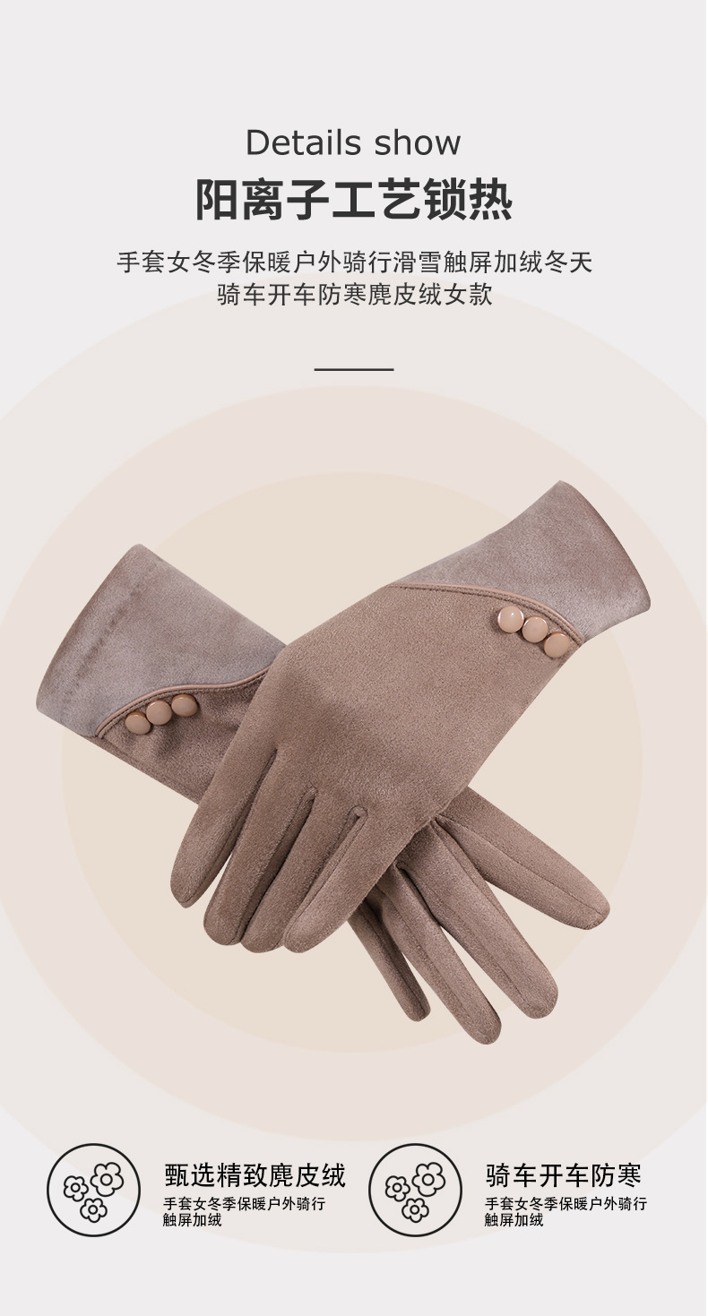 도매 스웨이드 장갑 여성의 가을과 겨울 따뜻한 기모 겨울 라이딩 한국 버전 두꺼운 여성 대외 무역 장갑 운전