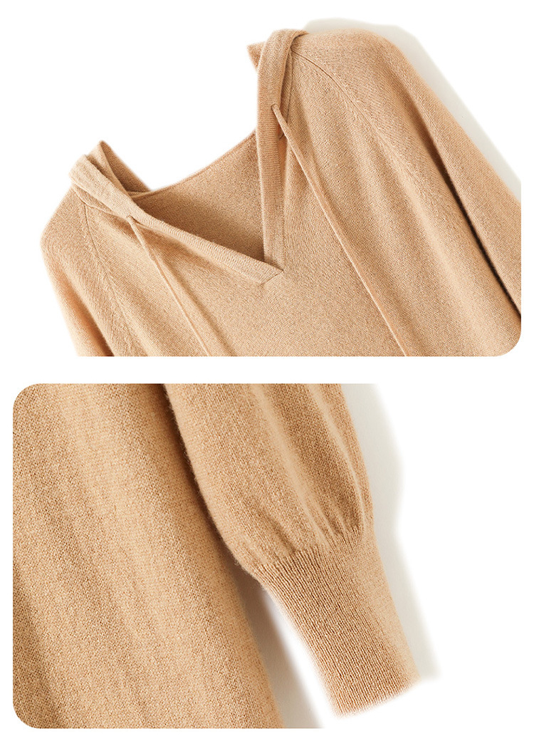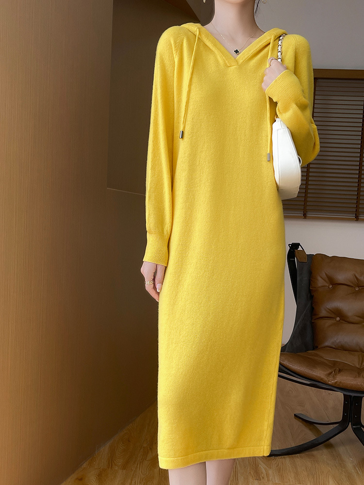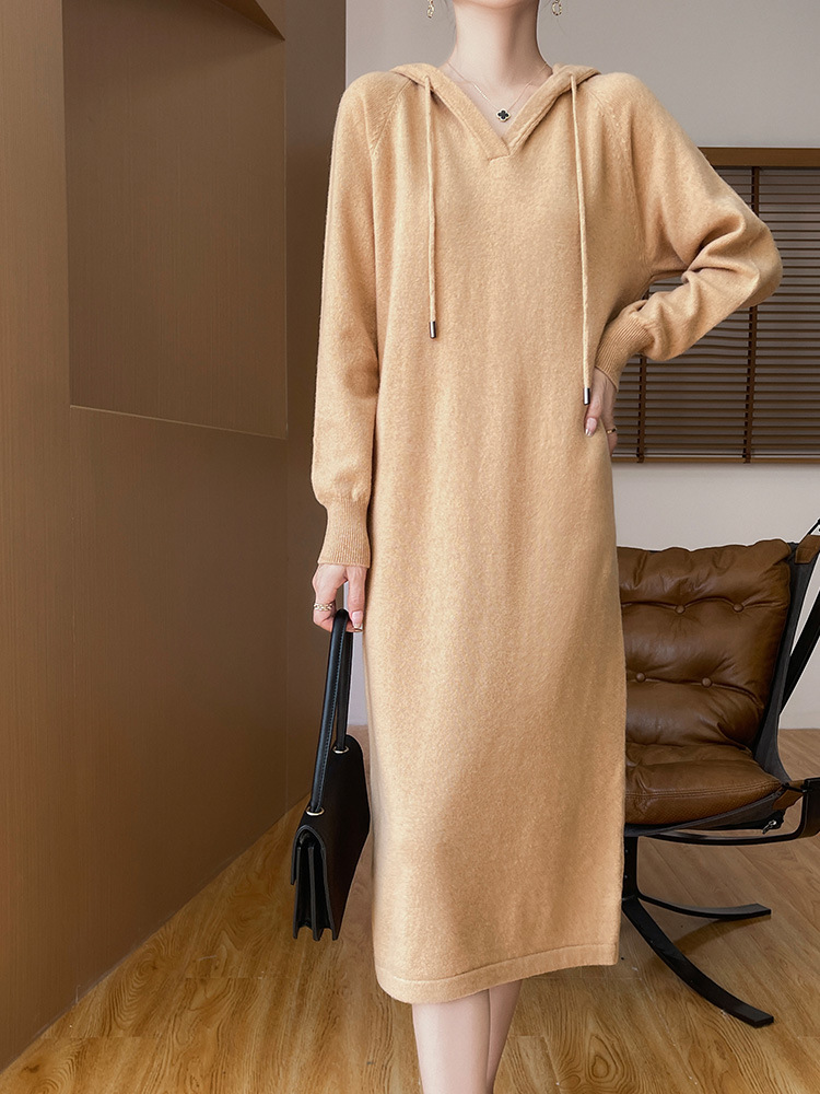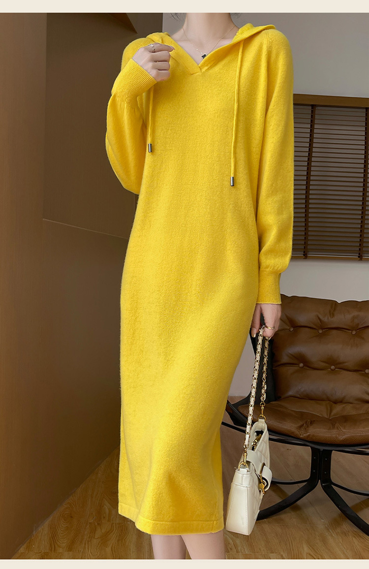 양모 원피스 2024 가을/겨울 새로운 캐주얼 느슨한 니트 스커트 무릎 위에 후드 스웨터 원피스 착용